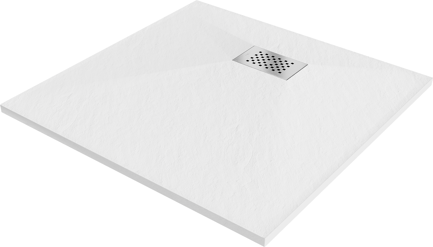 A superfície do tabuleiro do chuveiro assemelha-se a uma pedra na sua estrutura. Constitui uma combinação excecional de aparência natural com um design de interiores moderno. Adiciona caráter, realça a estética e a elegância da decoração da casa de banho e encanta com a sua forma.