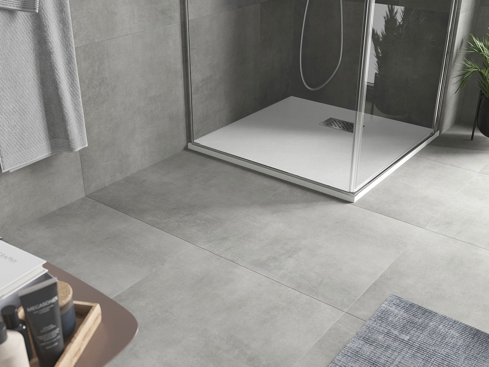 A base de duche foi concebida de forma a permitir que a água escoe livremente na direção do ralo. Assegura uma drenagem rápida e eficiente da água da superfície da base de duche, prevenindo a formação de poças e o alagamento da casa de banho.