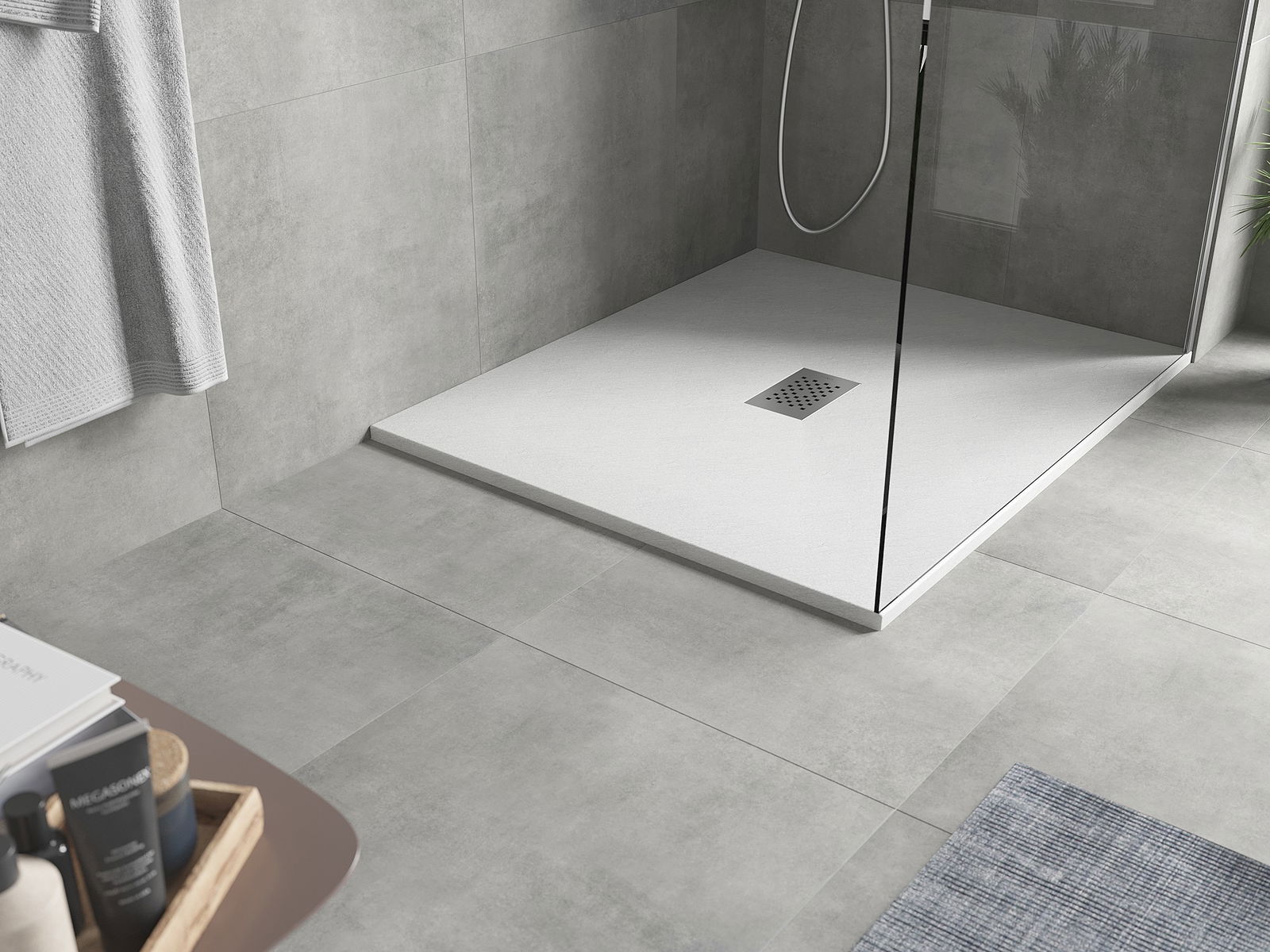 A base de duche foi concebida de forma a permitir que a água escoe livremente na direção do ralo. Assegura uma drenagem rápida e eficiente da água da superfície da base de duche, prevenindo a formação de poças e o alagamento da casa de banho.