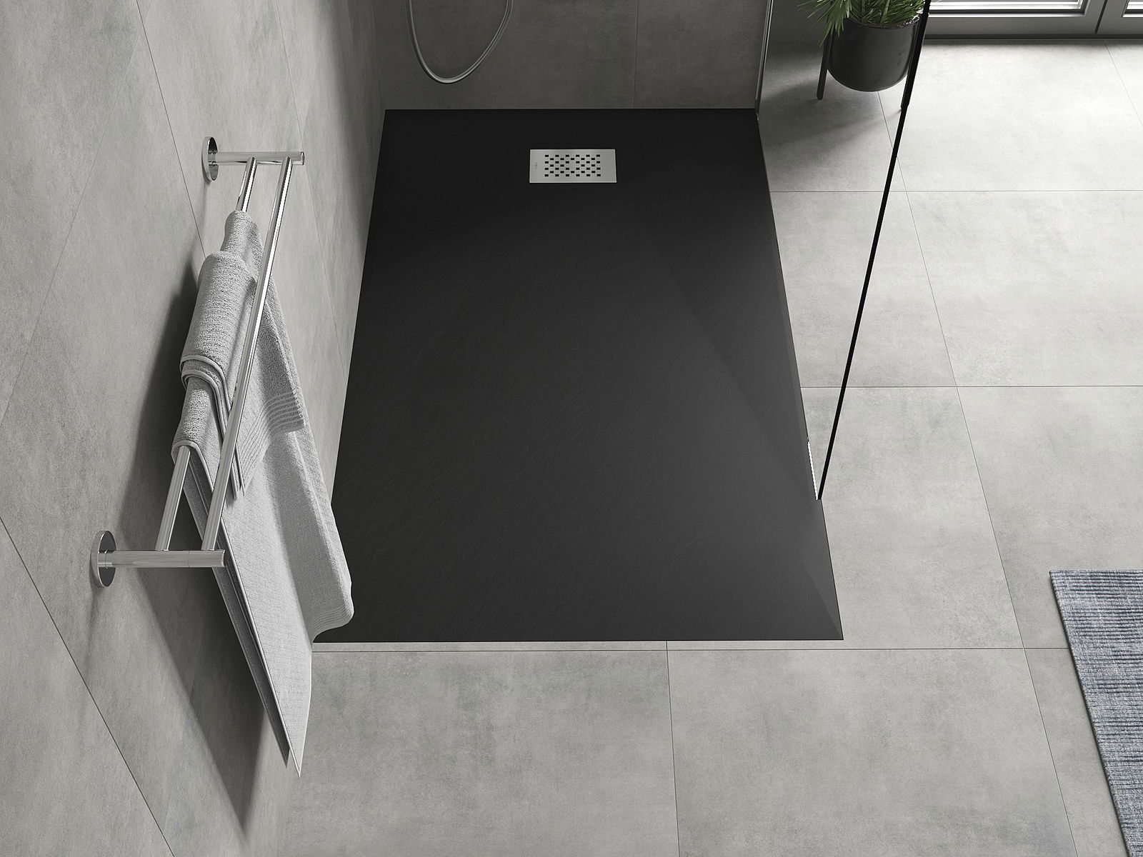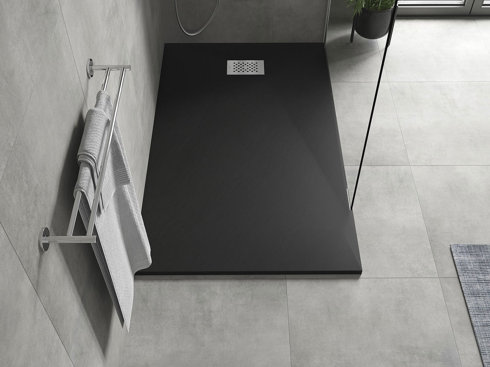 A superfície do tabuleiro do chuveiro assemelha-se a uma pedra na sua estrutura. Constitui uma combinação excecional de aparência natural com um design de interiores moderno. Adiciona caráter, realça a estética e a elegância da decoração da casa de banho e encanta com a sua forma.