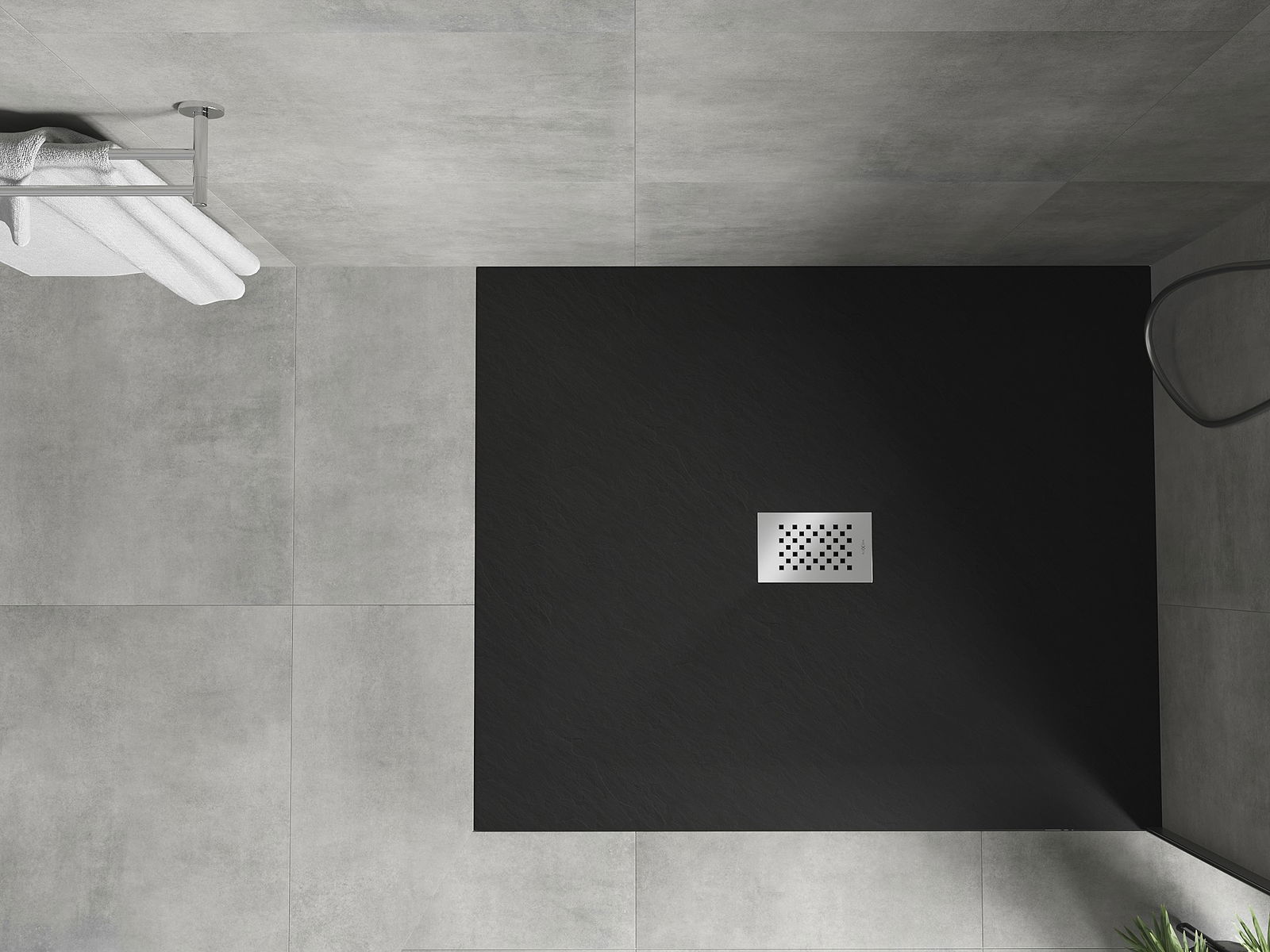 A base de duche foi concebida de forma a permitir que a água escoe livremente na direção do ralo. Assegura uma drenagem rápida e eficiente da água da superfície da base de duche, prevenindo a formação de poças e o alagamento da casa de banho.