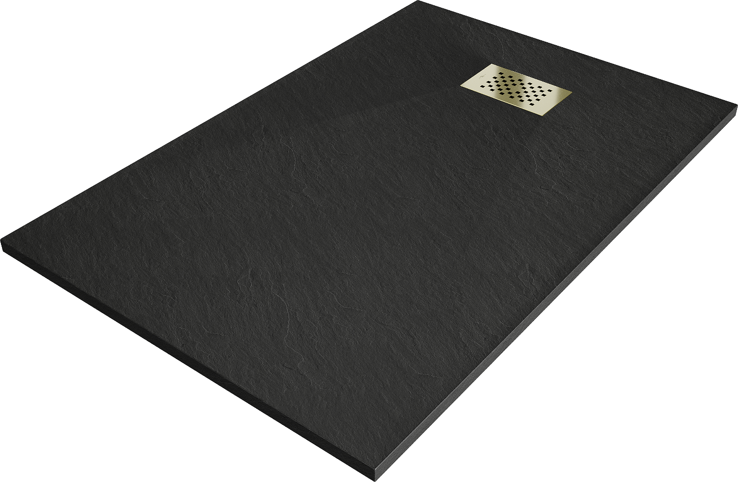 Mexen Hugo base de duche retangular SMC 110 x 80 cm, preta, cobertura dourada - 42708011-G