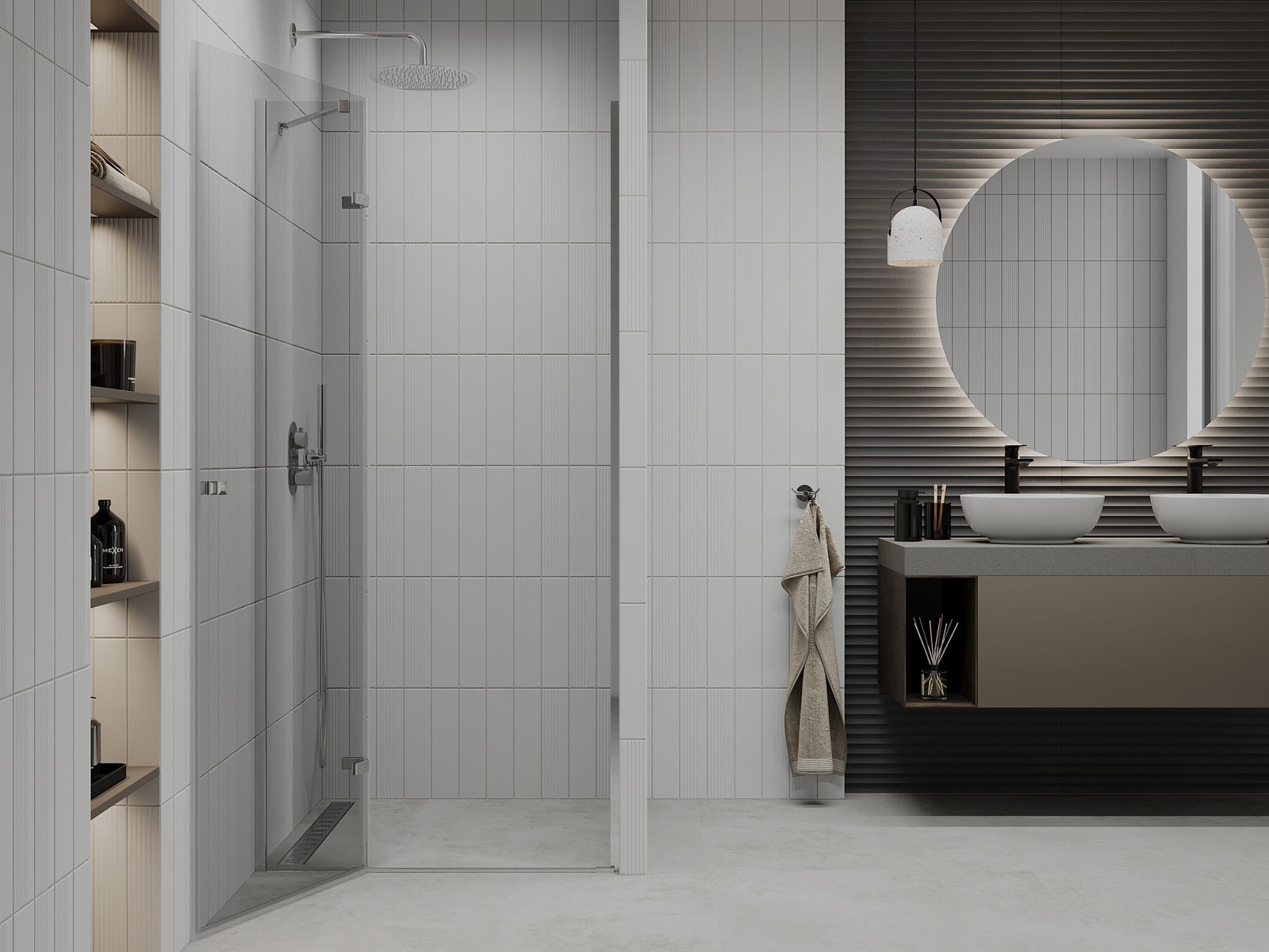 A pega prática e confortável foi feita de metal durável e resistente. A forma moderna combinada com o acabamento ajustado à cor dos perfis confere a todo o conjunto uma aparência moderna e estilosa, realçando a estética de qualquer casa de banho.