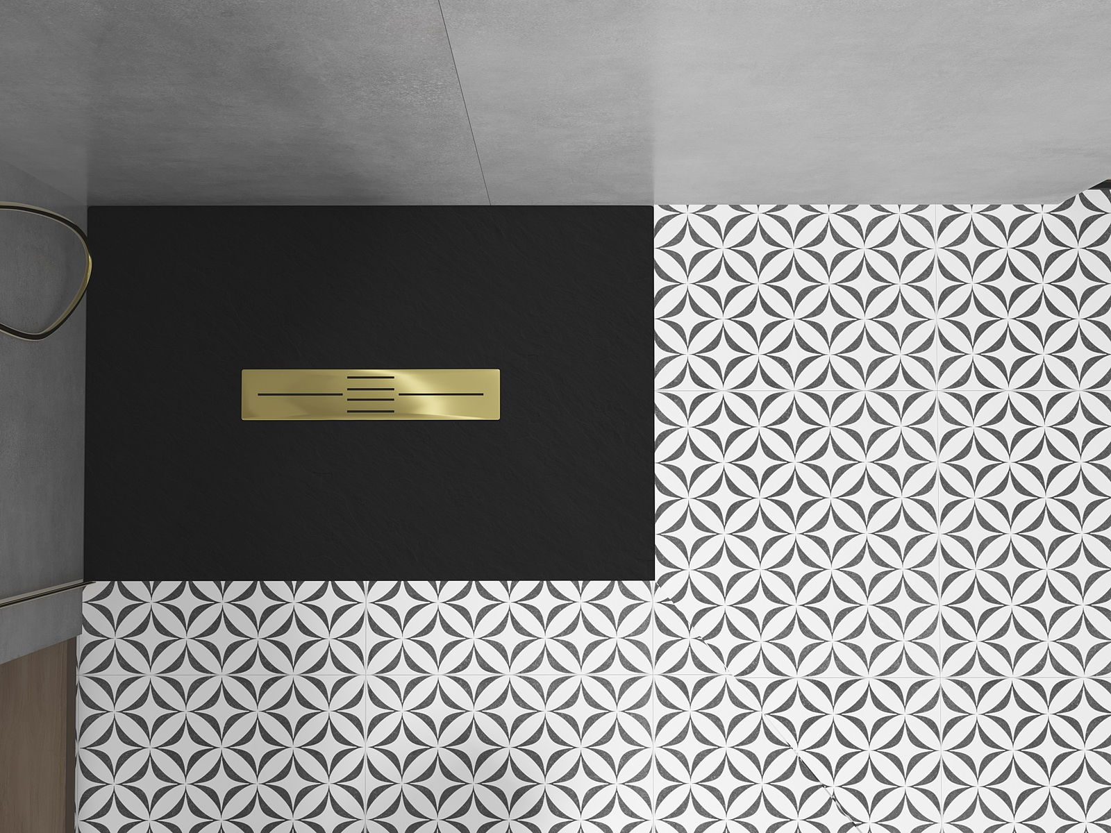 Mexen Toro base de duche retangular SMC 140 x 80 cm, preta, tampa dourada - 43708014-G