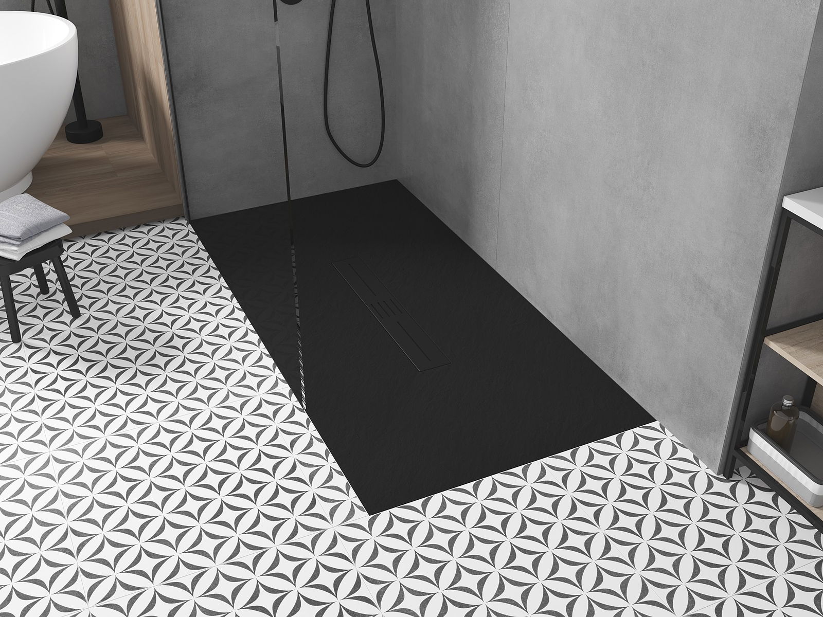 A superfície do tabuleiro do chuveiro assemelha-se a uma pedra na sua estrutura. Constitui uma combinação excecional de aparência natural com um design de interiores moderno. Adiciona caráter, realça a estética e a elegância da decoração da casa de banho e encanta com a sua forma.