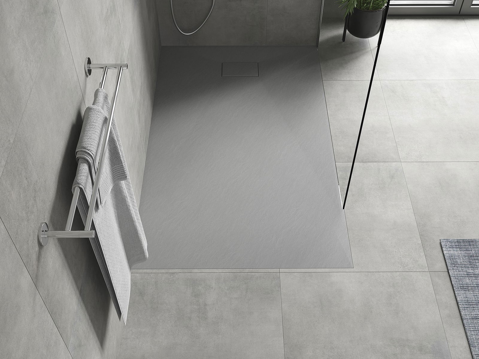 A superfície do tabuleiro do chuveiro assemelha-se a uma pedra na sua estrutura. Constitui uma combinação excecional de aparência natural com um design de interiores moderno. Adiciona caráter, realça a estética e a elegância da decoração da casa de banho e encanta com a sua forma.