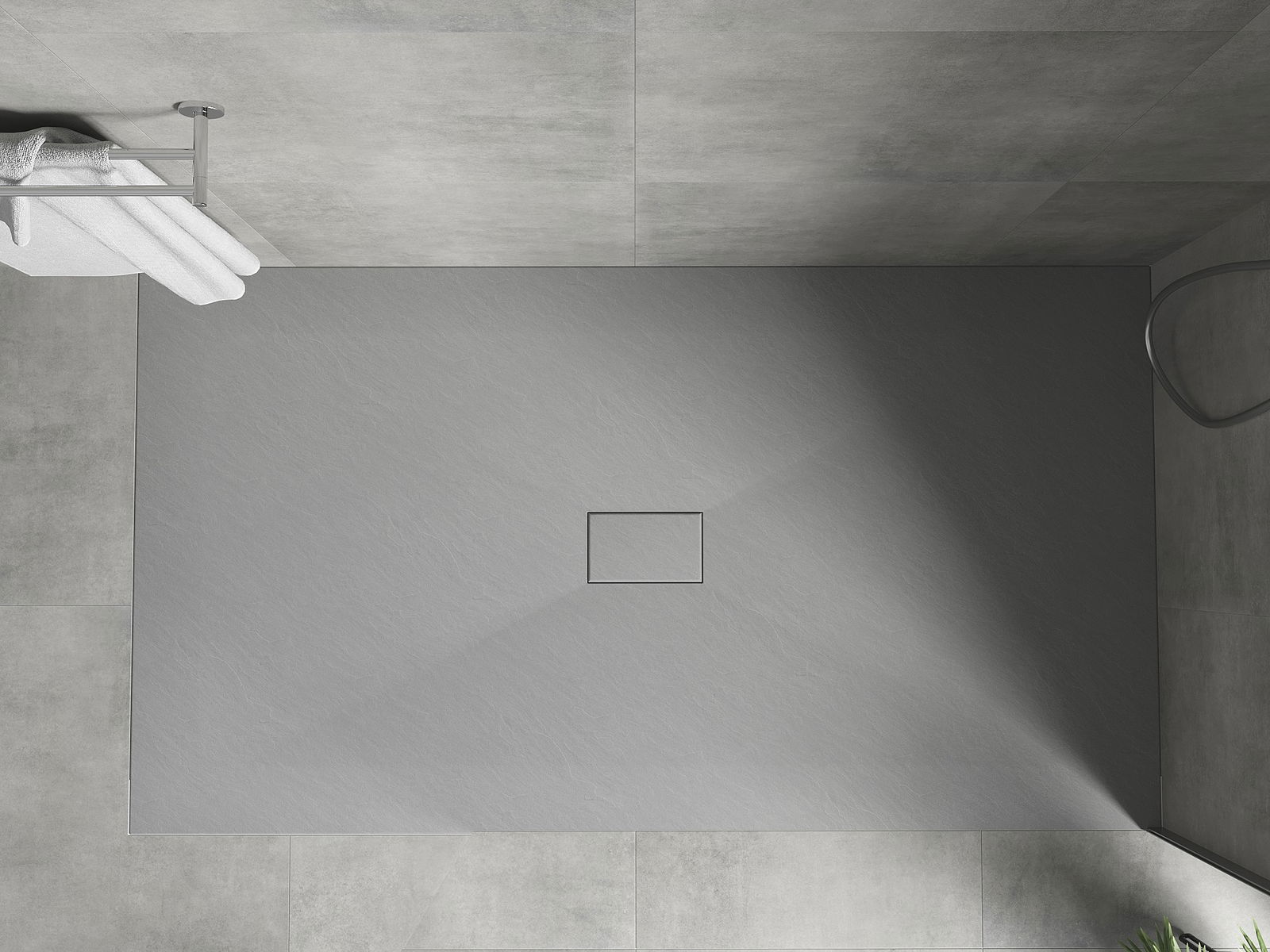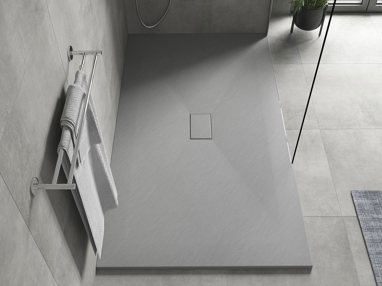 A superfície do tabuleiro do chuveiro assemelha-se a uma pedra na sua estrutura. Constitui uma combinação excecional de aparência natural com um design de interiores moderno. Adiciona caráter, realça a estética e a elegância da decoração da casa de banho e encanta com a sua forma.