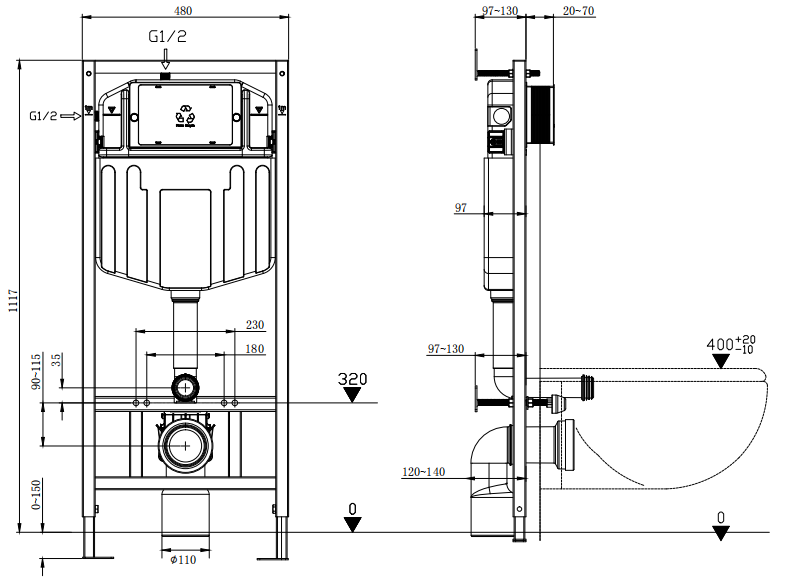 A possibilidade de ajustar a altura da estrutura permite uma melhor adaptação a diferentes condições técnicas na casa de banho. A gama de ajuste flexível garante conveniência de montagem e obtenção da altura ideal da estrutura.