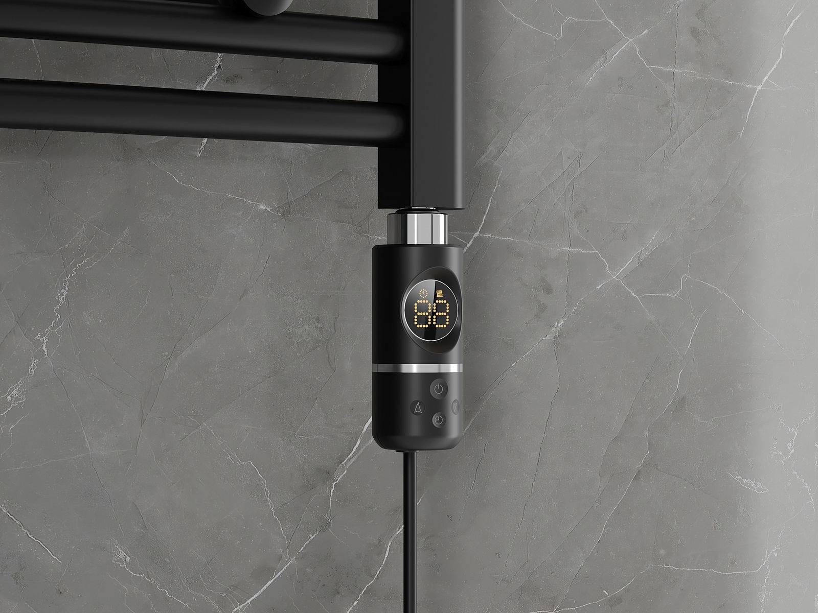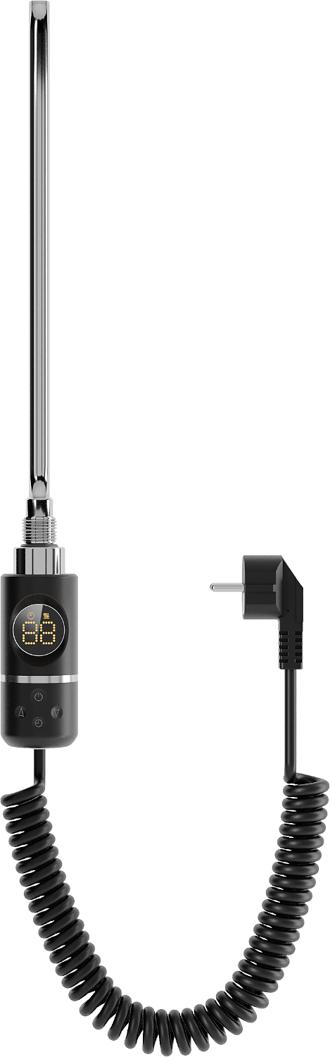 Mexen FA-I é uma resistência elétrica de 600 W na cor preta. O seu comprimento total é de 656 mm e o comprimento do elemento de aquecimento é de 540 mm. Funciona com uma tensão de 230V/50 Hz e possui um cabo de ligação com 1,5 m de comprimento. A resistência tem rosca G 1/2" e grau de proteção IP44. Está equipada com ecrã LED, bloqueio parental e proteção contra funcionamento a seco. As funções Sensitive e Comfort permitem a regulação da temperatura e opções de secagem.