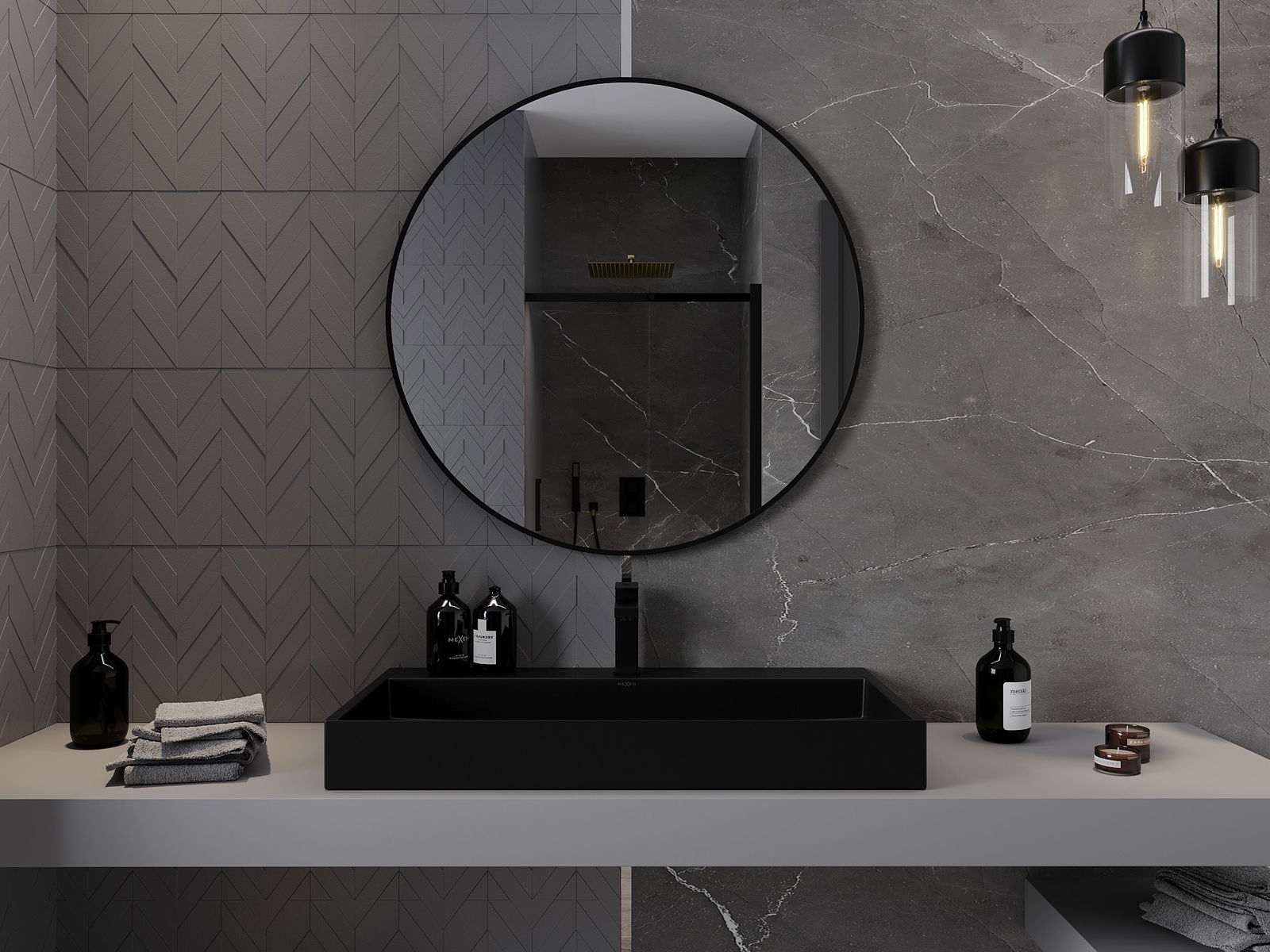 Mexen Loft espelho de casa de banho redondo 90 cm, moldura preta - 9850-090-090-000-70