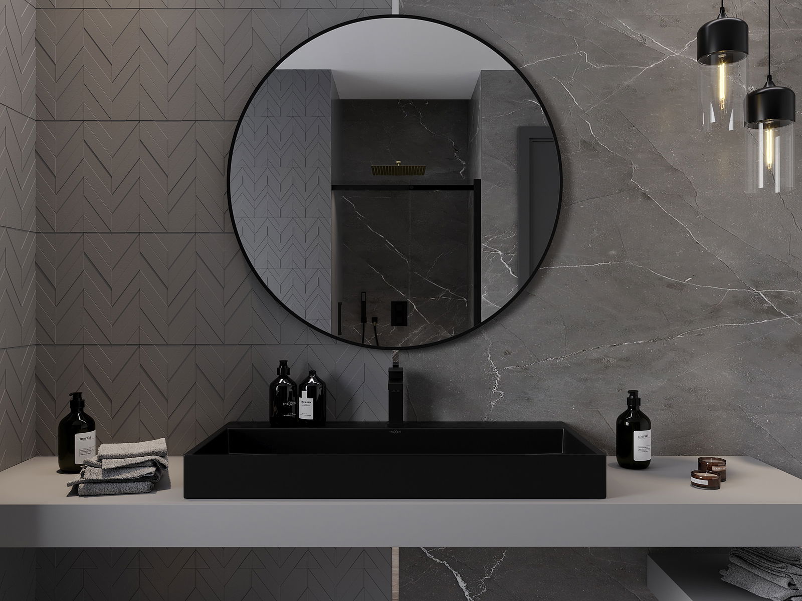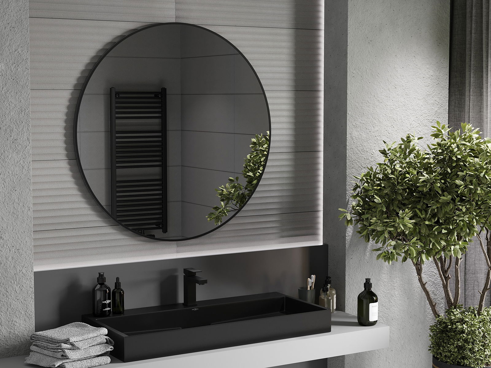 Mexen Loft espelho de casa de banho redondo 100 cm, moldura preta - 9850-100-100-000-70