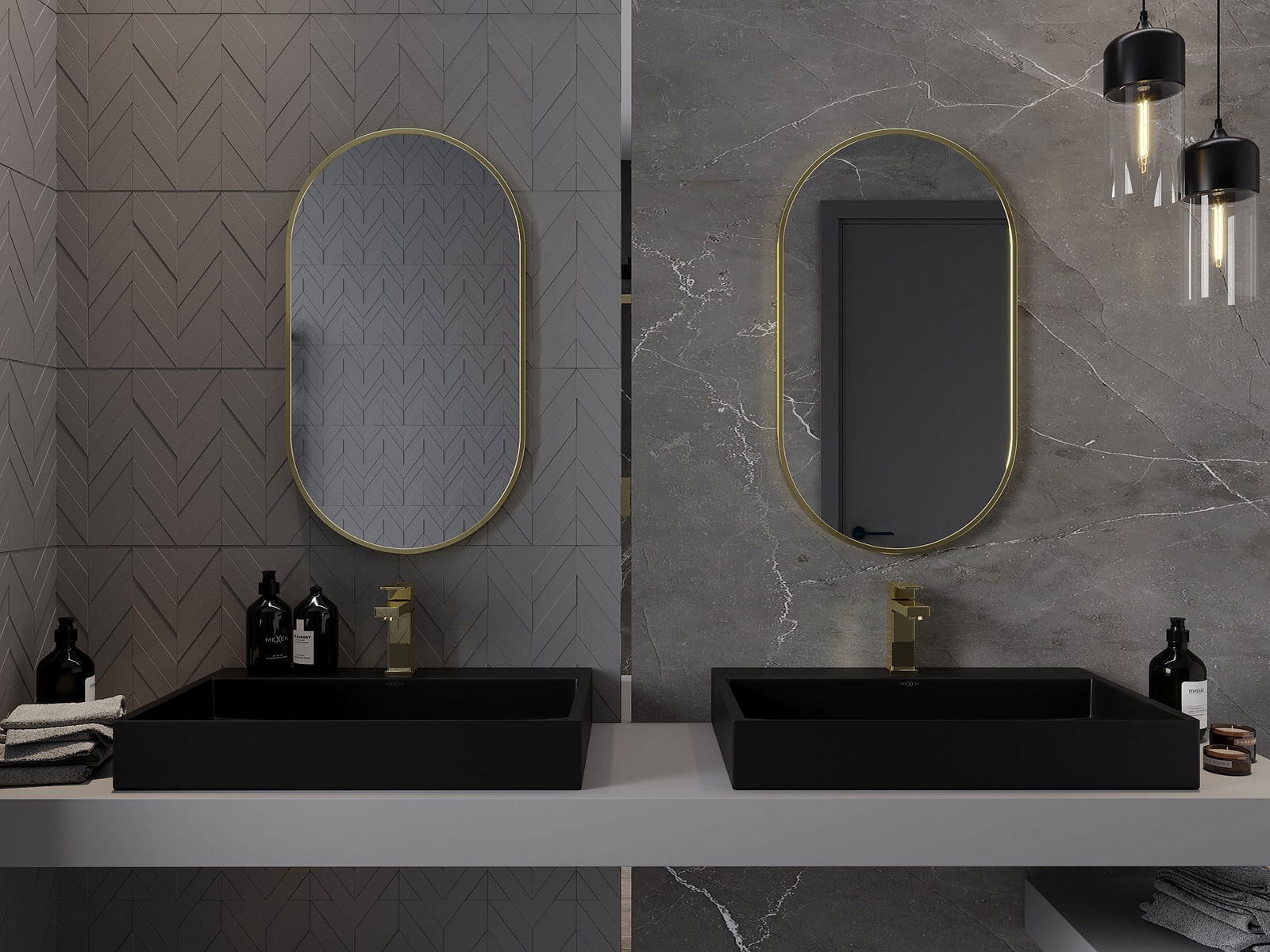 Mexen Loft espelho de casa de banho oval 80 x 45 cm, moldura dourada - 9851-080-045-000-50