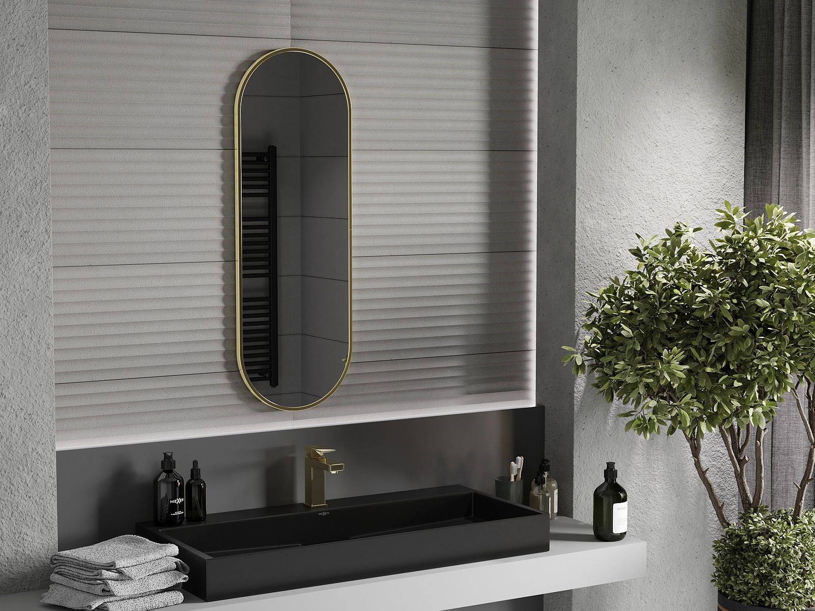 Mexen Loft espelho de casa de banho oval 100 x 35 cm, moldura dourada - 9851-100-035-000-50