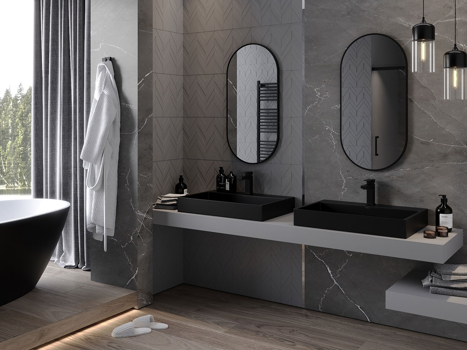 Mexen Loft espelho de casa de banho oval 90 x 45 cm, moldura preta - 9851-090-045-000-70