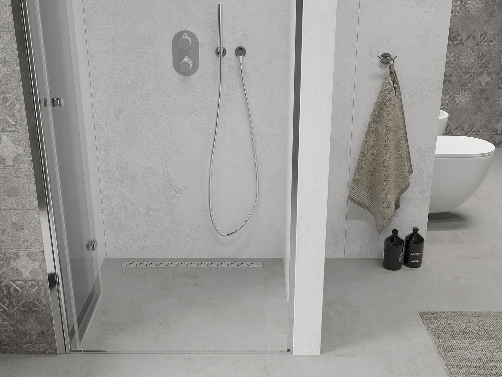 O produto, dependendo das necessidades, pode ser montado tanto no chuveiro como diretamente no chão. O método de montagem universal permite adaptar o produto a diferentes tipos de casas de banho e configurações de espaço.