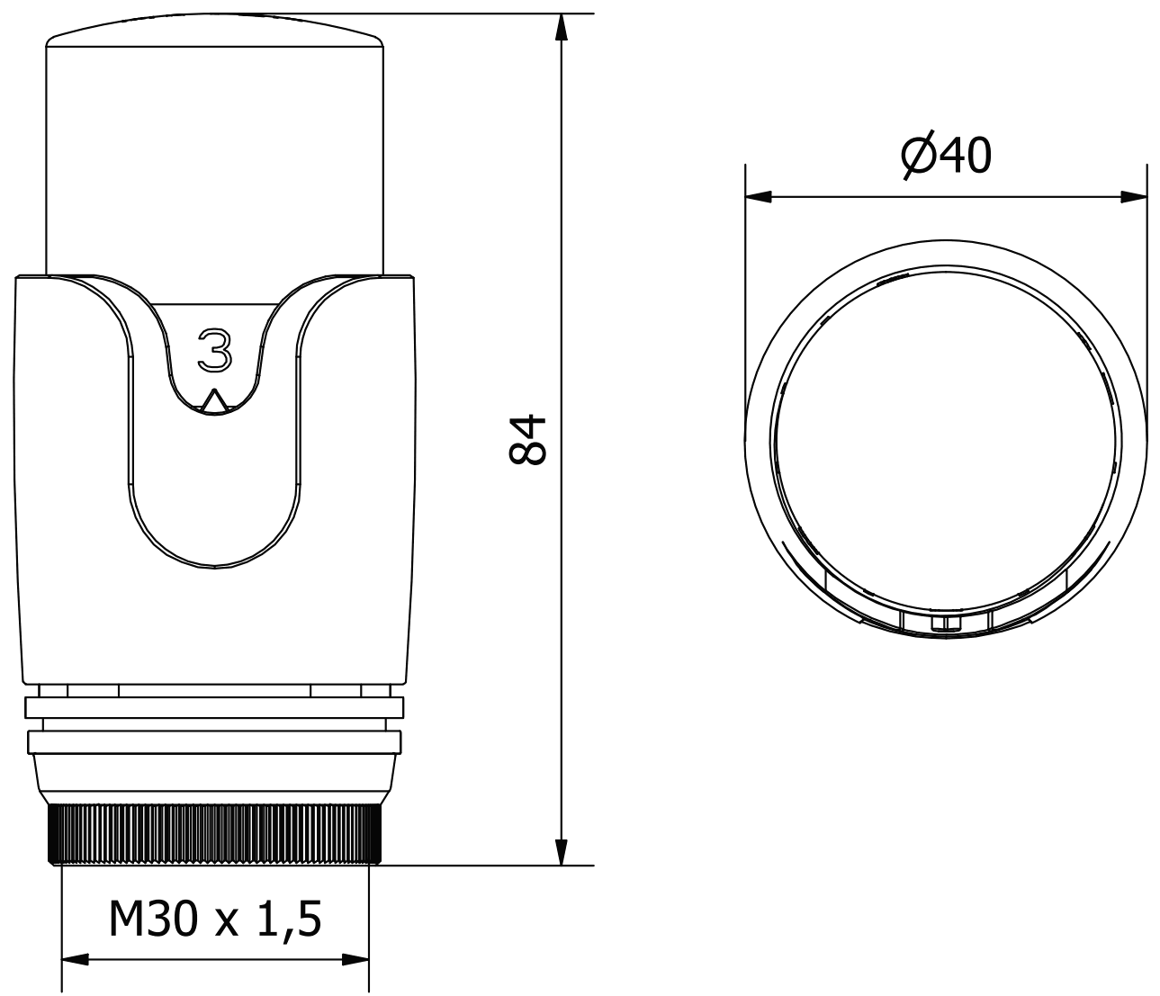 Este é um tamanho padrão de rosca utilizado em muitas cabeças termostáticas, especialmente em dispositivos usados em instalações de aquecimento. O símbolo M30 indica que o diâmetro externo da rosca é de 30 mm, e 1,5 mm - o passo da rosca é de 1,5 mm.