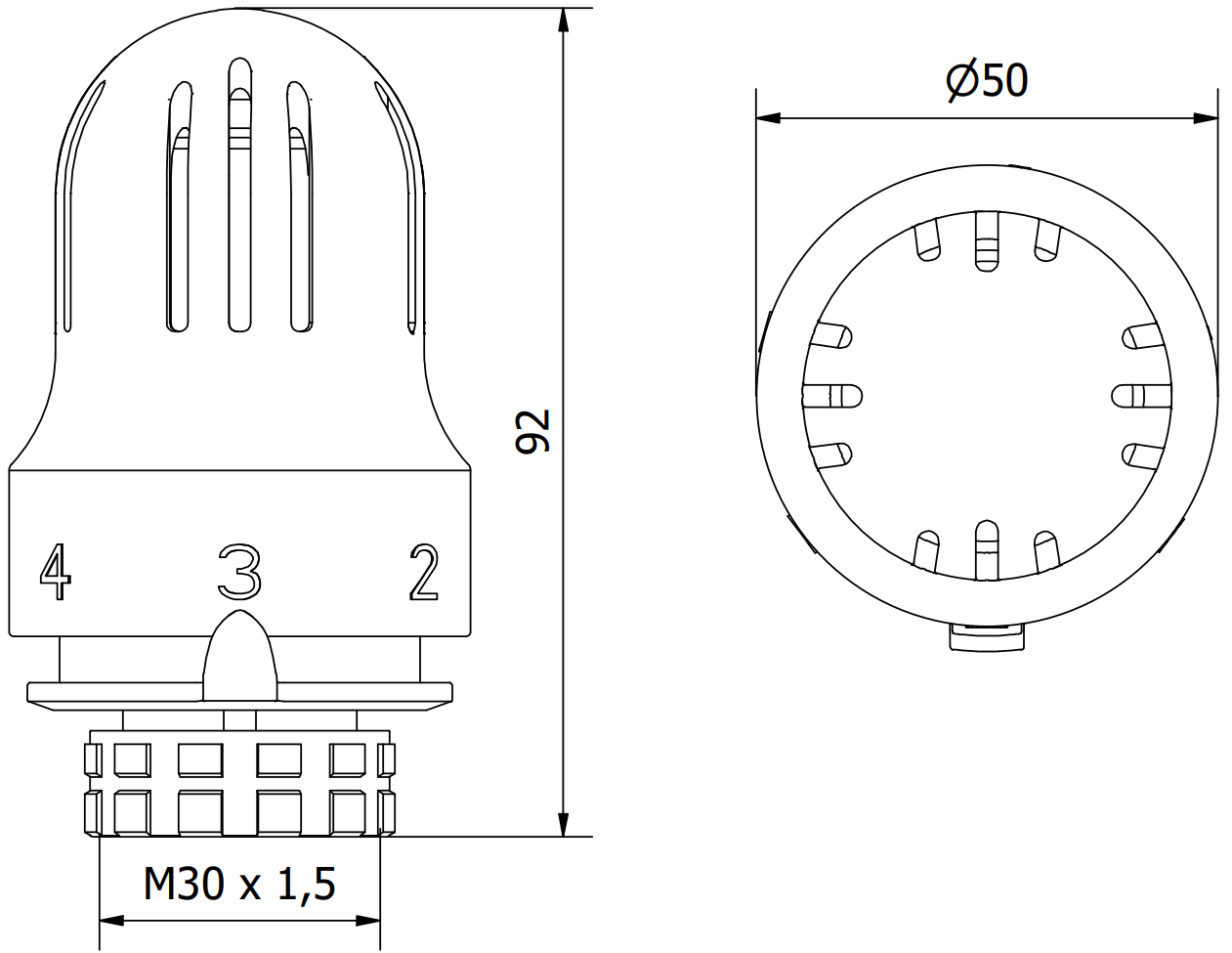 Este é um tamanho padrão de rosca utilizado em muitas cabeças termostáticas, especialmente em dispositivos usados em instalações de aquecimento. O símbolo M30 indica que o diâmetro externo da rosca é de 30 mm, e 1,5 mm - o passo da rosca é de 1,5 mm.