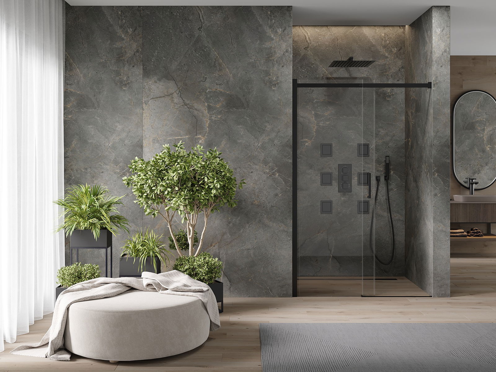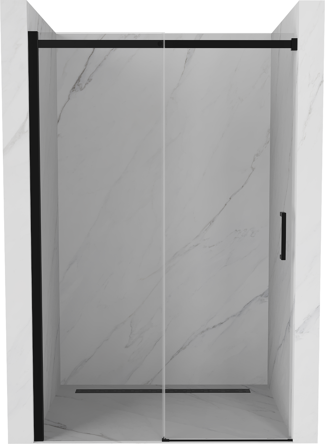 As portas de correr movem-se em guias especiais e não requerem espaço adicional para serem abertas, por isso são ideais para casas de banho menores. Graças aos rolos duplos com corpo de metal, o seu movimento é suave.