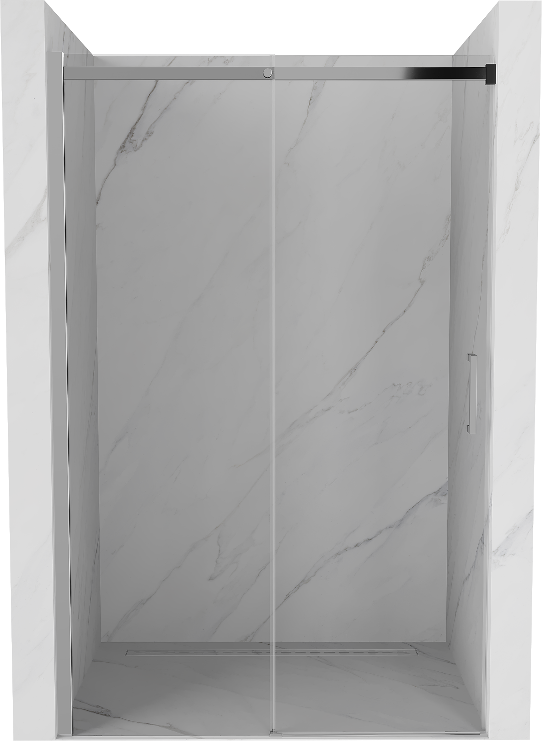 As portas de correr movem-se em guias especiais e não requerem espaço adicional para serem abertas, por isso são ideais para casas de banho menores. Graças aos rolos duplos com corpo de metal, o seu movimento é suave.