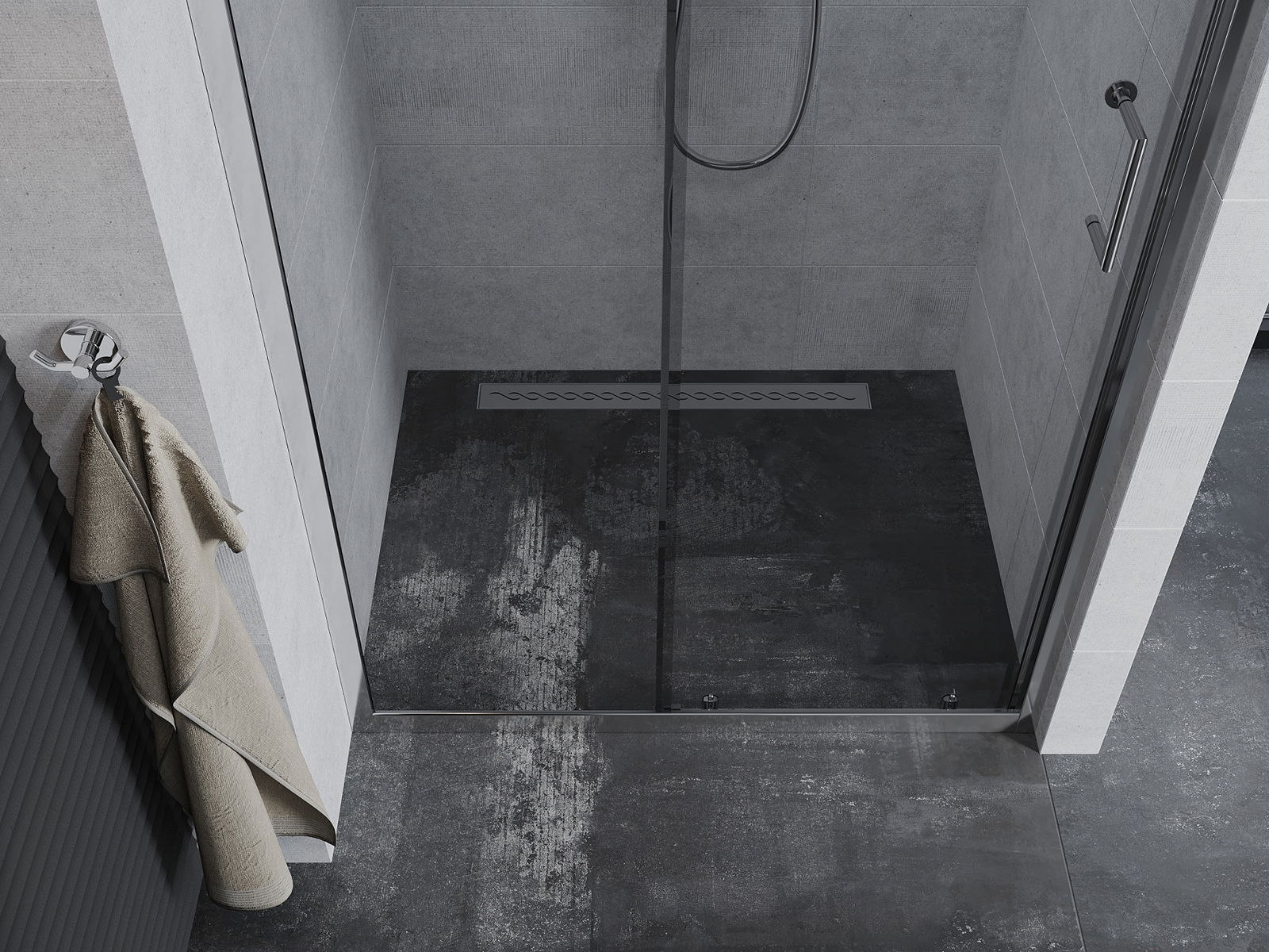 A pega prática e confortável foi feita de metal durável e resistente. A forma moderna combinada com o acabamento ajustado à cor dos perfis confere a todo o conjunto uma aparência moderna e estilosa, realçando a estética de qualquer casa de banho.