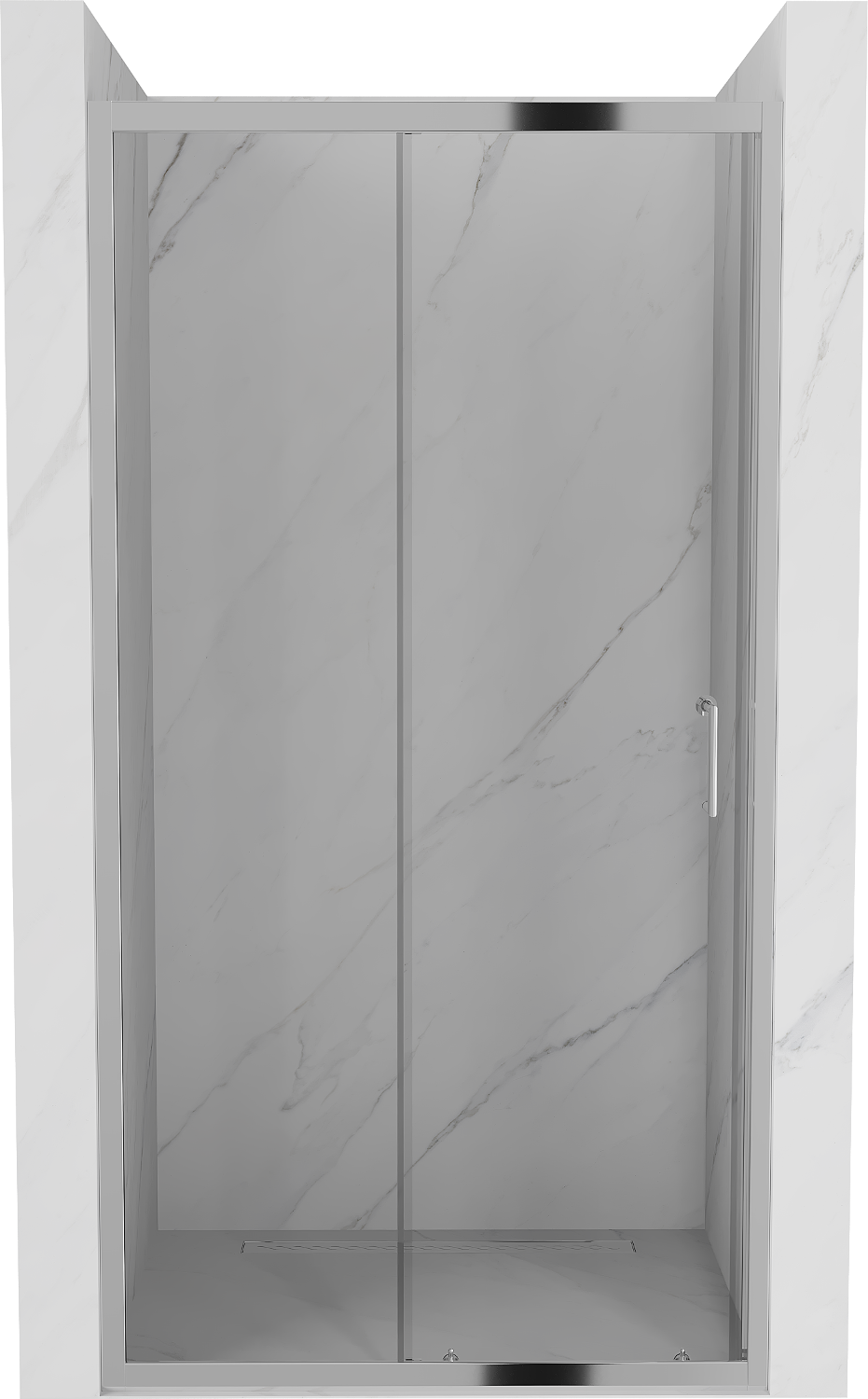 As portas de correr movem-se em calhas especiais e não requerem espaço adicional para serem abertas, por isso são ideais para casas de banho mais pequenas. Graças aos rolos duplos de plástico durável, o seu movimento é suave.