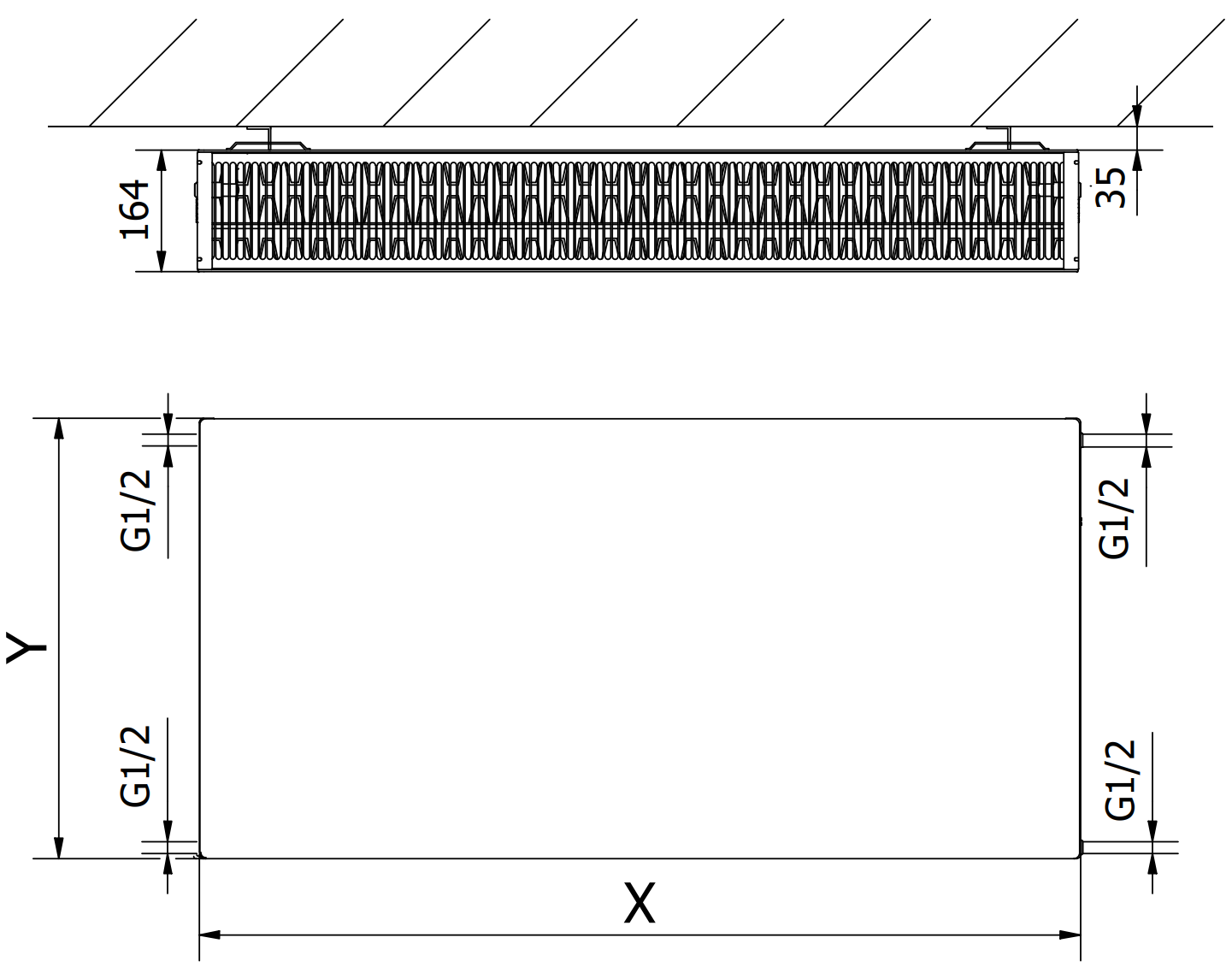 Espaçamento dos canais de água verticais: 33,3 mm
