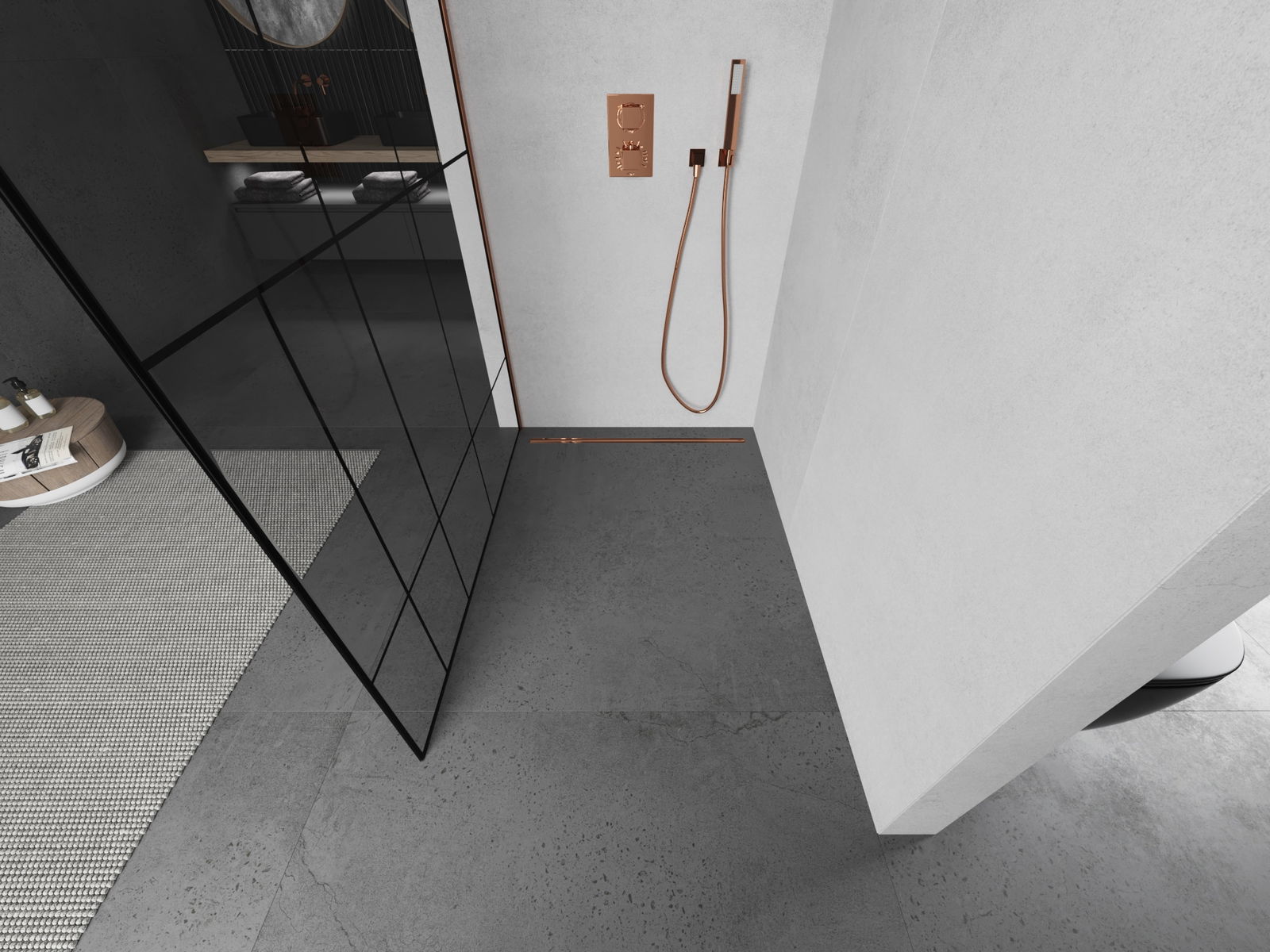 Mexen Kioto parede de chuveiro Walk-in 120 x 200 cm, padrão preto 8 mm, ouro rosa - 800-120-101-60-78