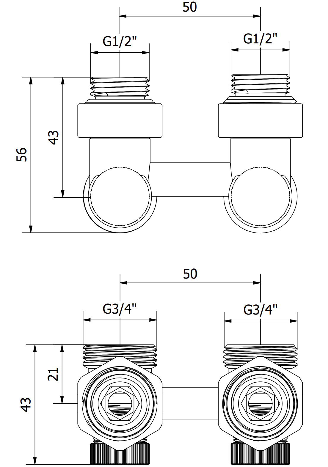 Válvula de radiador com conexão roscada de 1/2" e 3/4" é um tipo popular de válvula usada em instalações de aquecimento. Estas roscas são padrão em muitos sistemas de aquecimento e servem para conectar radiadores a instalações de aquecimento central.