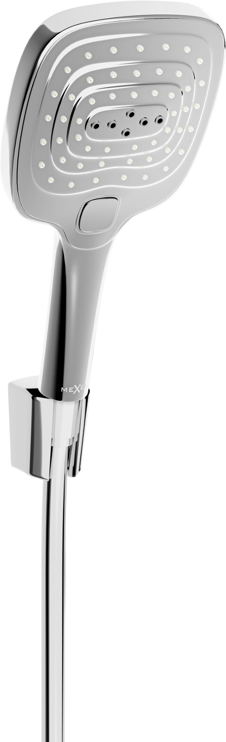 A pega do chuveiro possui três tipos de jato, alterados através de um interruptor. Oferece total liberdade e possibilidade de adaptação às necessidades do utilizador, oferecendo um jato de água suave ou mais forte e concentrado.