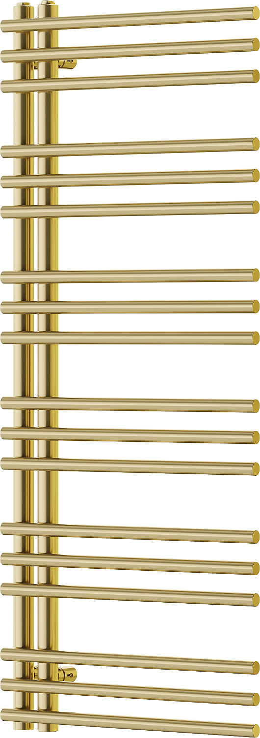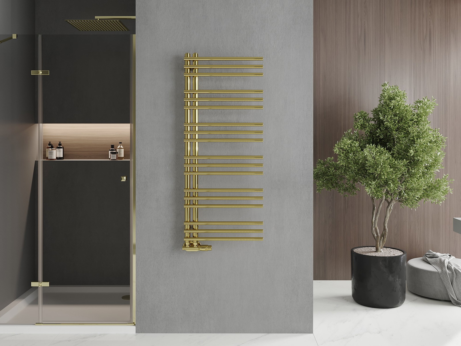 O radiador de casa de banho Mexen Neptun não é apenas funcional, mas também uma solução estilosa para qualquer casa de banho. Com dimensões de 1200 x 500 mm e acabamento dourado, encaixa perfeitamente em interiores modernos. Fabricado em aço, assegura confiabilidade e durabilidade. A potência de 360 W garante aquecimento eficaz, e a temperatura máxima de operação de 95 °C, juntamente com a resistência ao fogo classe A1, confirmam a sua segurança. O kit de montagem e a possibilidade de instalação de barra aquecedora fazem dele uma escolha versátil.