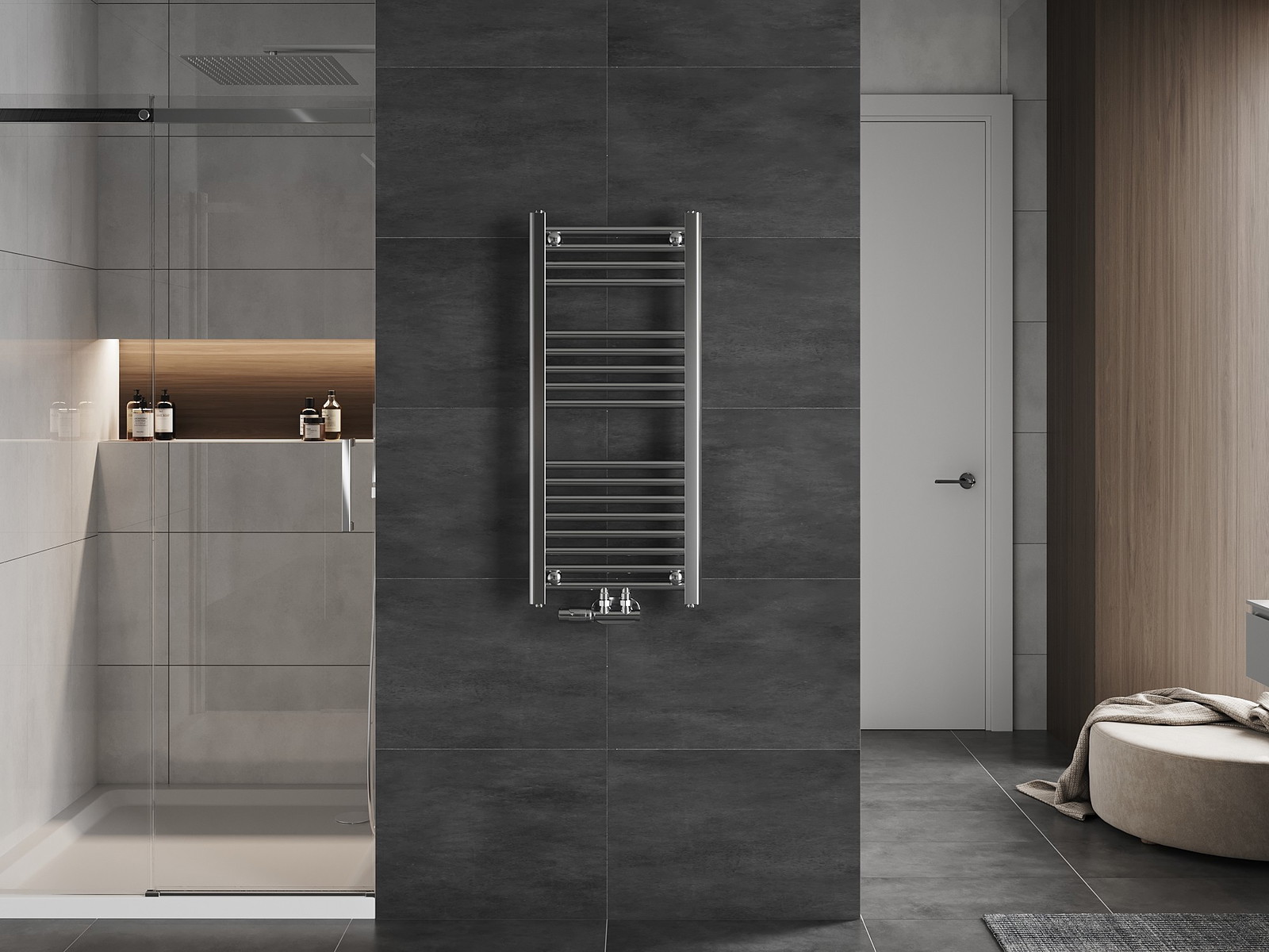 Mexen Mars é um moderno aquecedor de casa de banho que combina estilo com funcionalidade. Graças às dimensões de 900 x 400 mm e potência de 244 W, aquece eficazmente mesmo casas de banho maiores. Feito de aço de alta qualidade e revestido com um acabamento cromado durável, é resistente à corrosão e danos. Mexen Mars pode ser instalado de várias formas graças às conexões flexíveis. O conjunto inclui todos os acessórios de montagem necessários. A sua alta temperatura de funcionamento (até 95 °C) e a possibilidade de instalação de uma resistência aumentam ainda mais o conforto de uso.