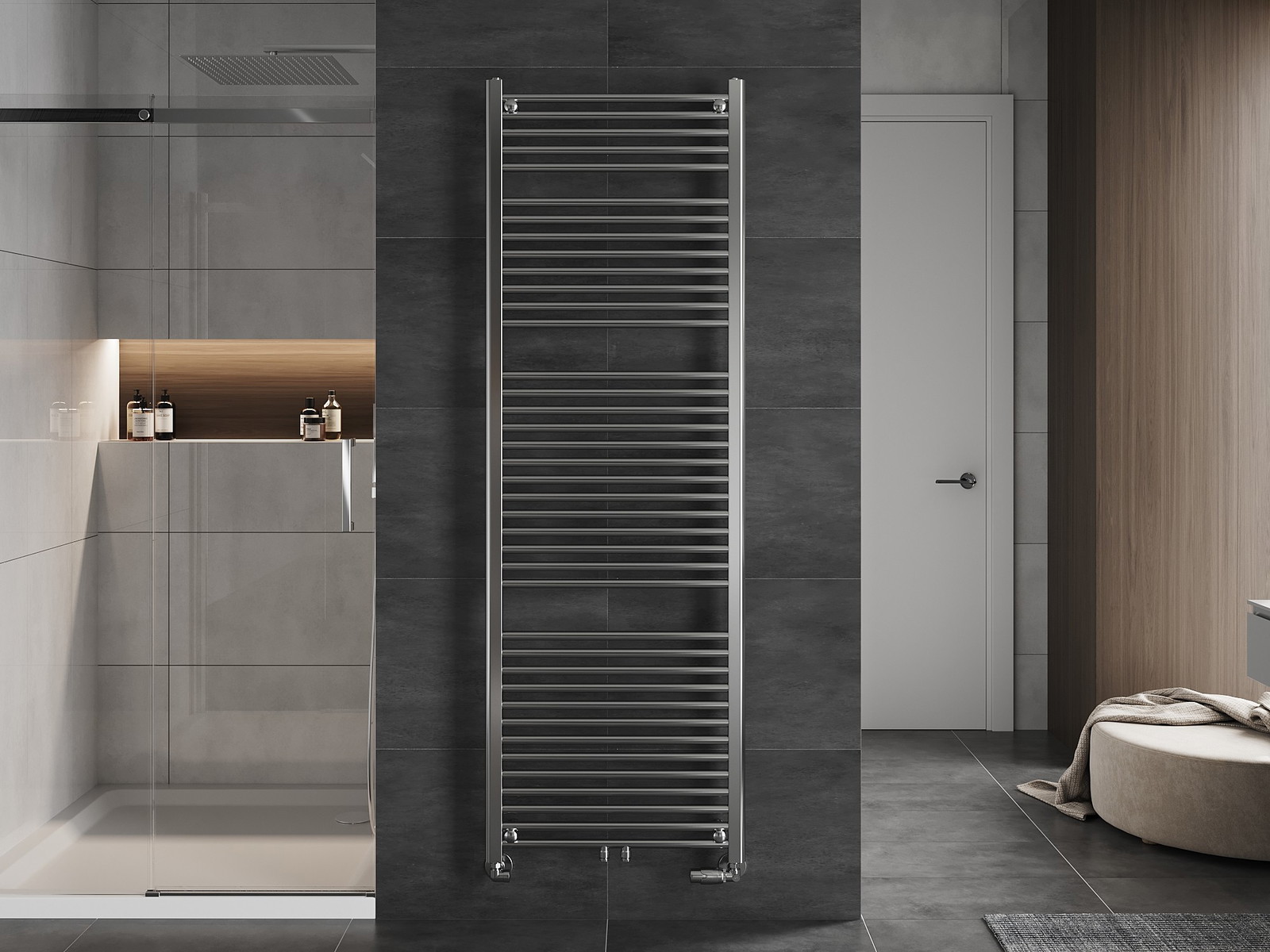 Mexen Mars é um elegante radiador de casa de banho com dimensões de 1800 x 600 mm e potência de 752 W, acabado em cor cromada. Feito de aço, caracteriza-se pela alta qualidade e resistência à corrosão. Com a possibilidade de montagem de uma resistência, é funcional e versátil. Oferece opções de ligação flexíveis - inferior e central, permitindo fácil instalação. A temperatura máxima de funcionamento é de 95 °C e a pressão de trabalho é de 0,6 Mpa. Inclui suportes, kit de montagem e purgador.