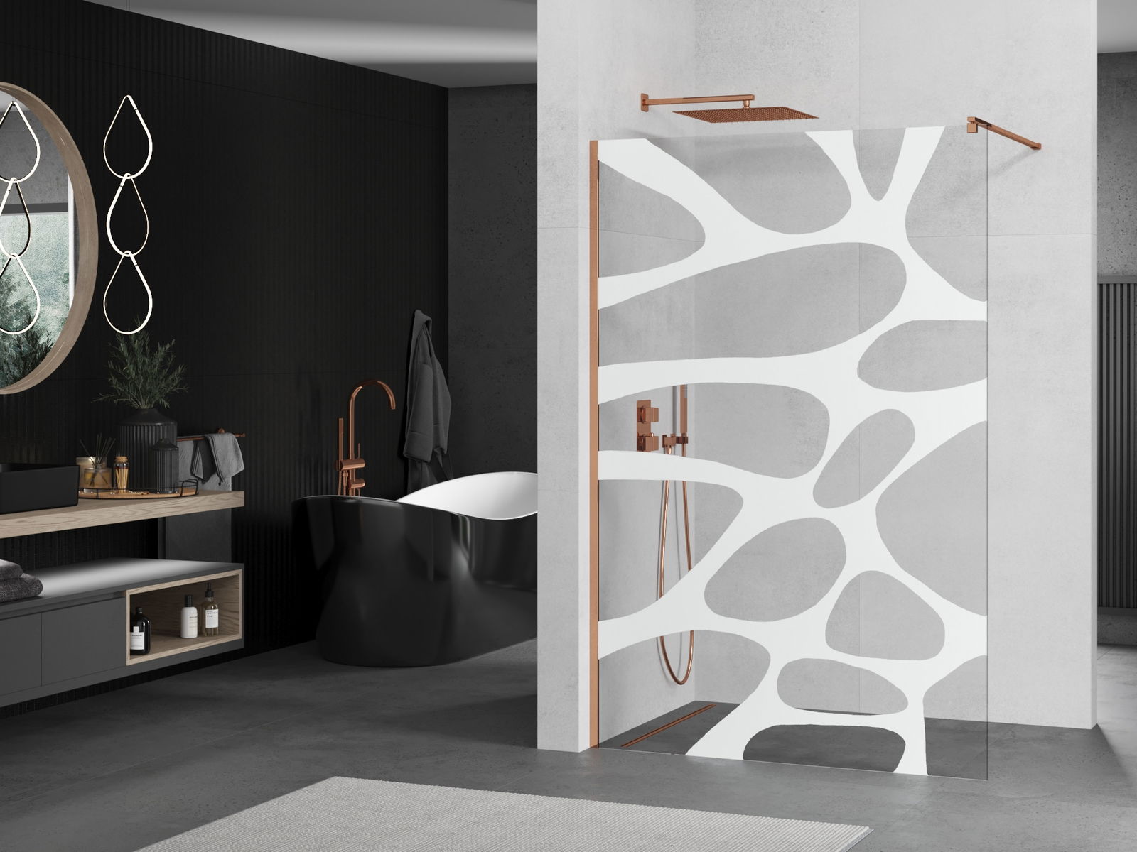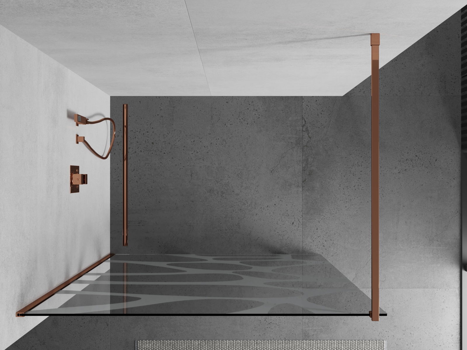 Mexen Kioto parede de chuveiro Walk-in 140 x 200 cm, onda branca 8 mm, ouro rosa - 800-140-101-60-97