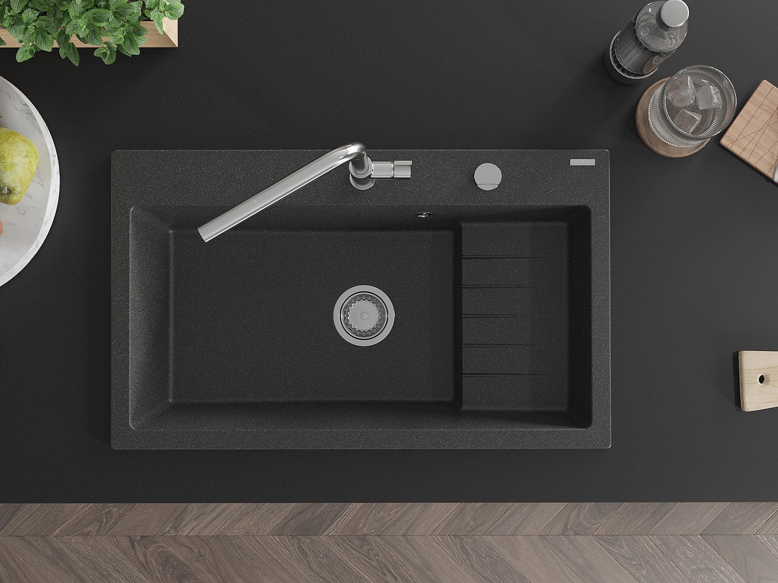 A superfície do lava-loiça é muito bem endurecida, destacando-se pela excecional resistência a danos mecânicos e riscos. O material durável permite desfrutar de uma boa aparência do lava-loiça por muitos anos de uso.