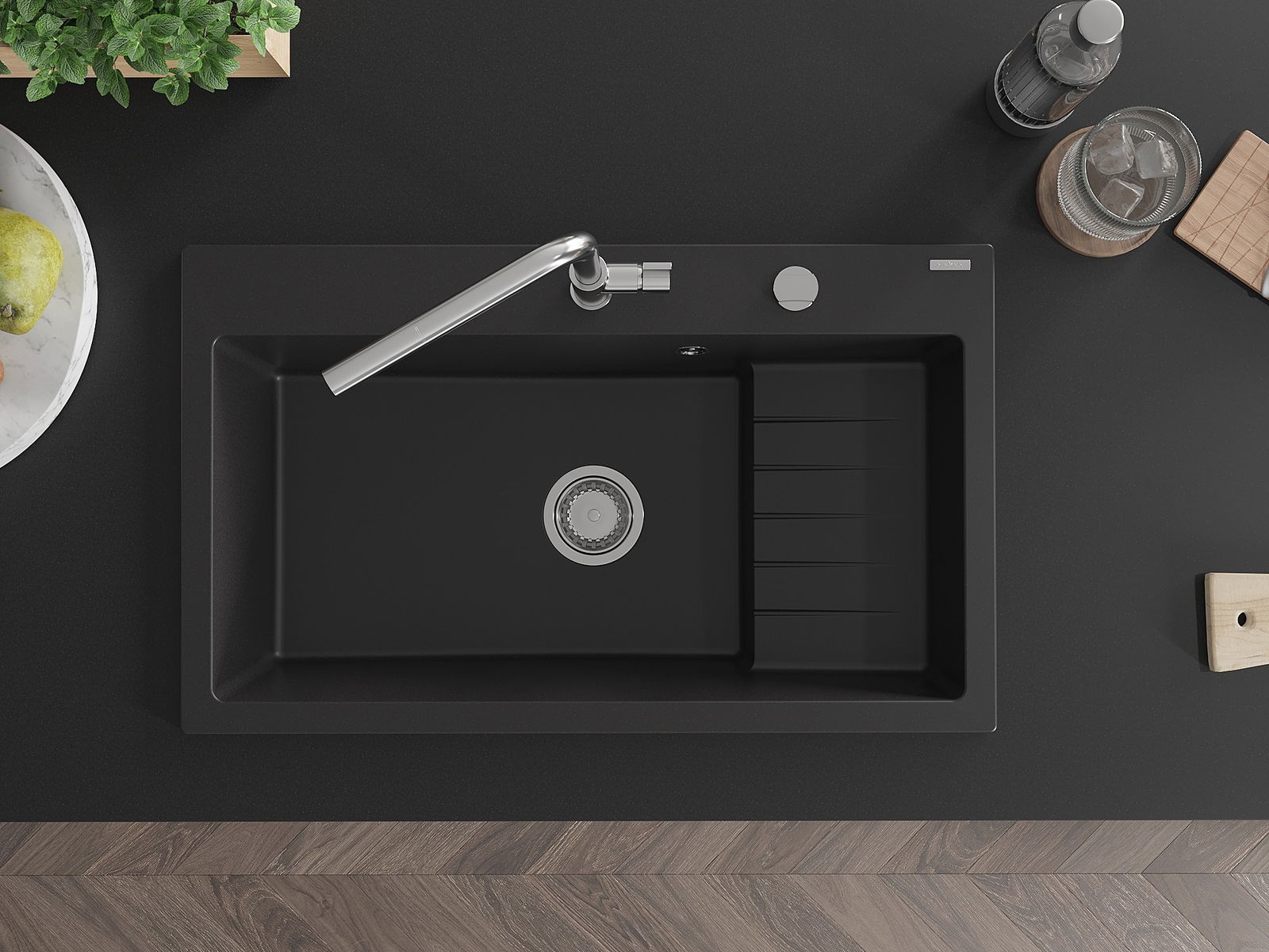 A superfície do lava-loiça é muito bem endurecida, destacando-se pela excecional resistência a danos mecânicos e riscos. O material durável permite desfrutar de uma boa aparência do lava-loiça por muitos anos de uso.