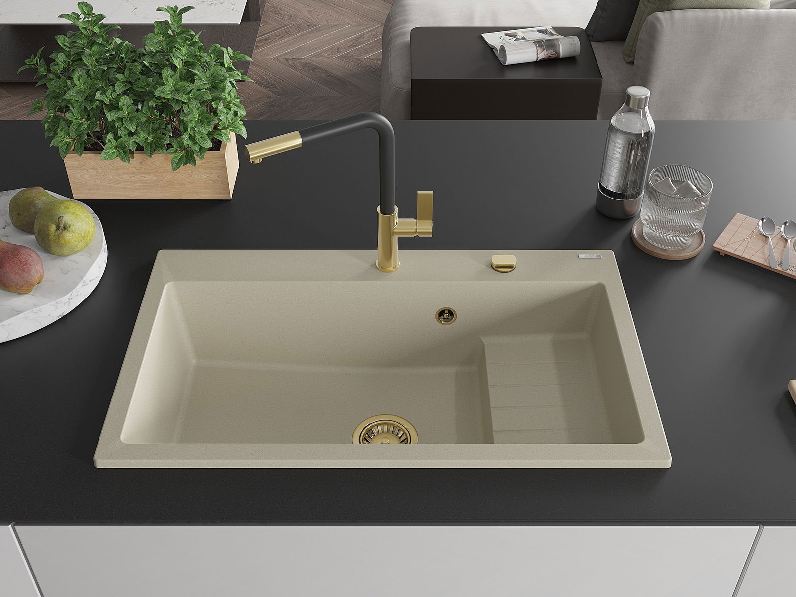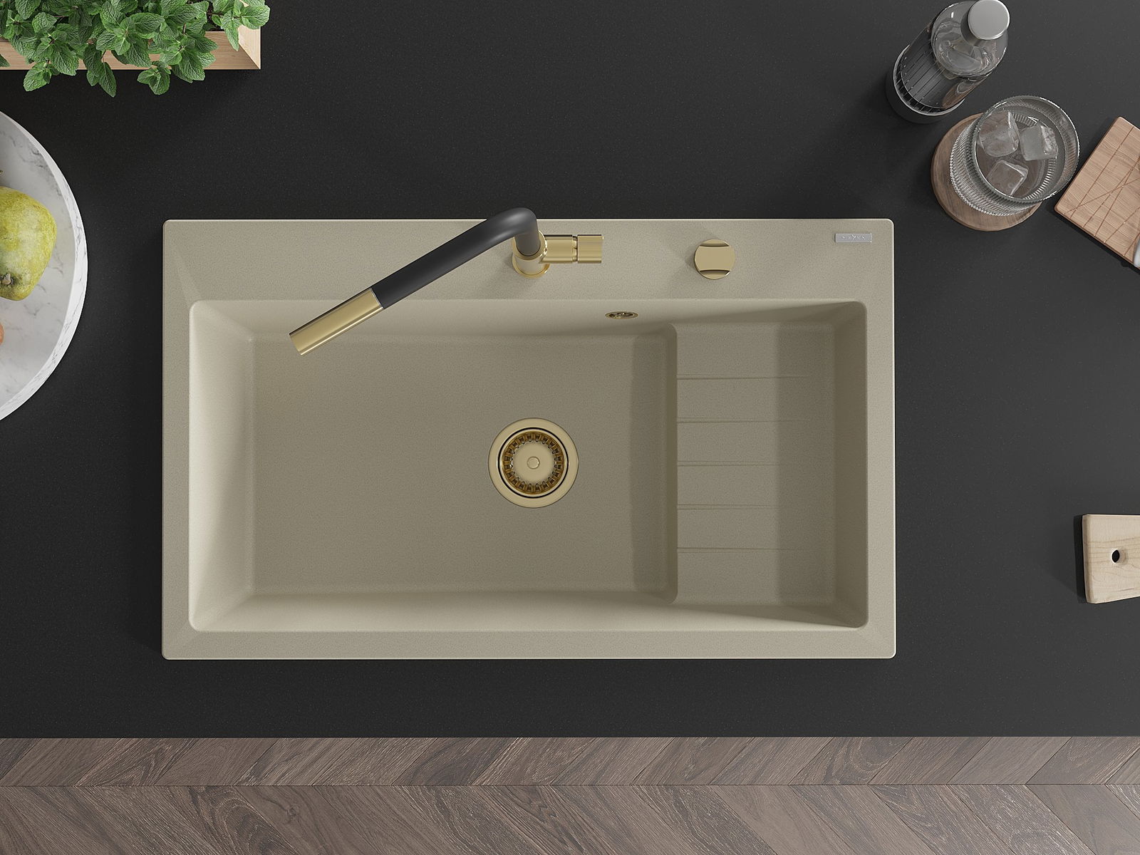 O lava-loiça é feito de granito de alta qualidade. Constitui um complemento elegante, e acima de tudo prático, para qualquer cozinha, independentemente do seu estilo. A alta qualidade e durabilidade do granito garantem muitos anos de utilização.