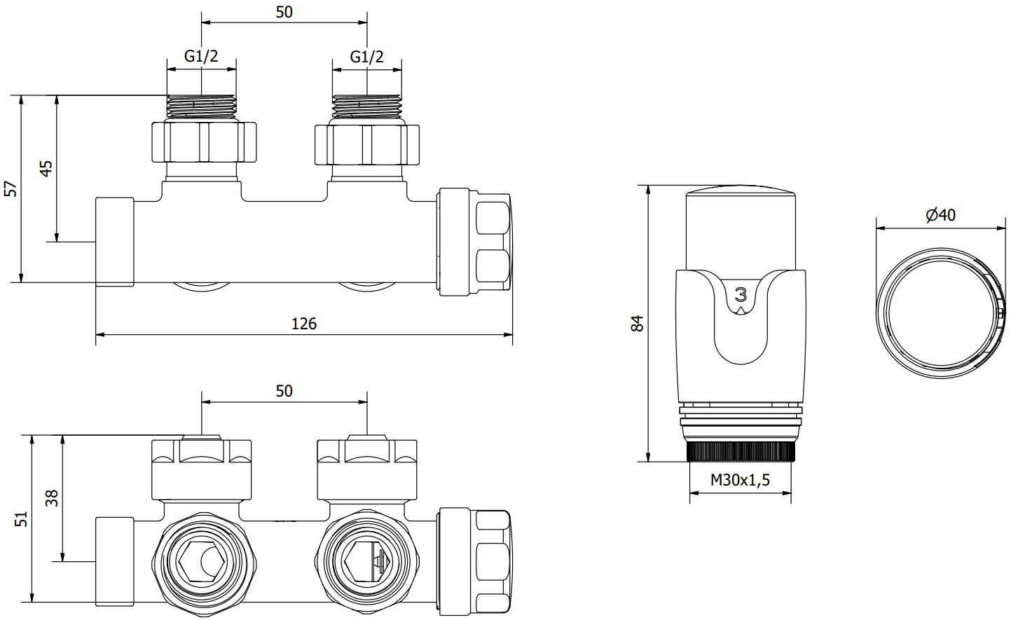 Rosca da cabeça: M30 x 1,5 mm