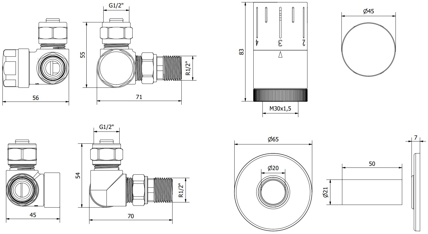 No conjunto inclui válvula termostática de radiador e de corte