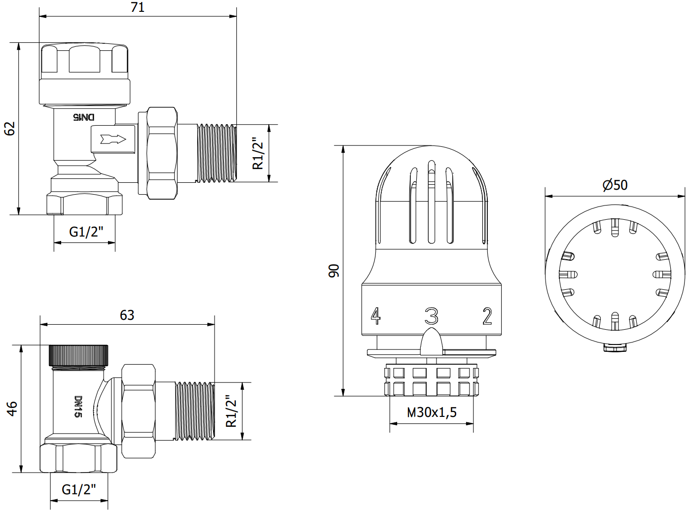 Diâmetro da conexão das válvulas: G 1/2"