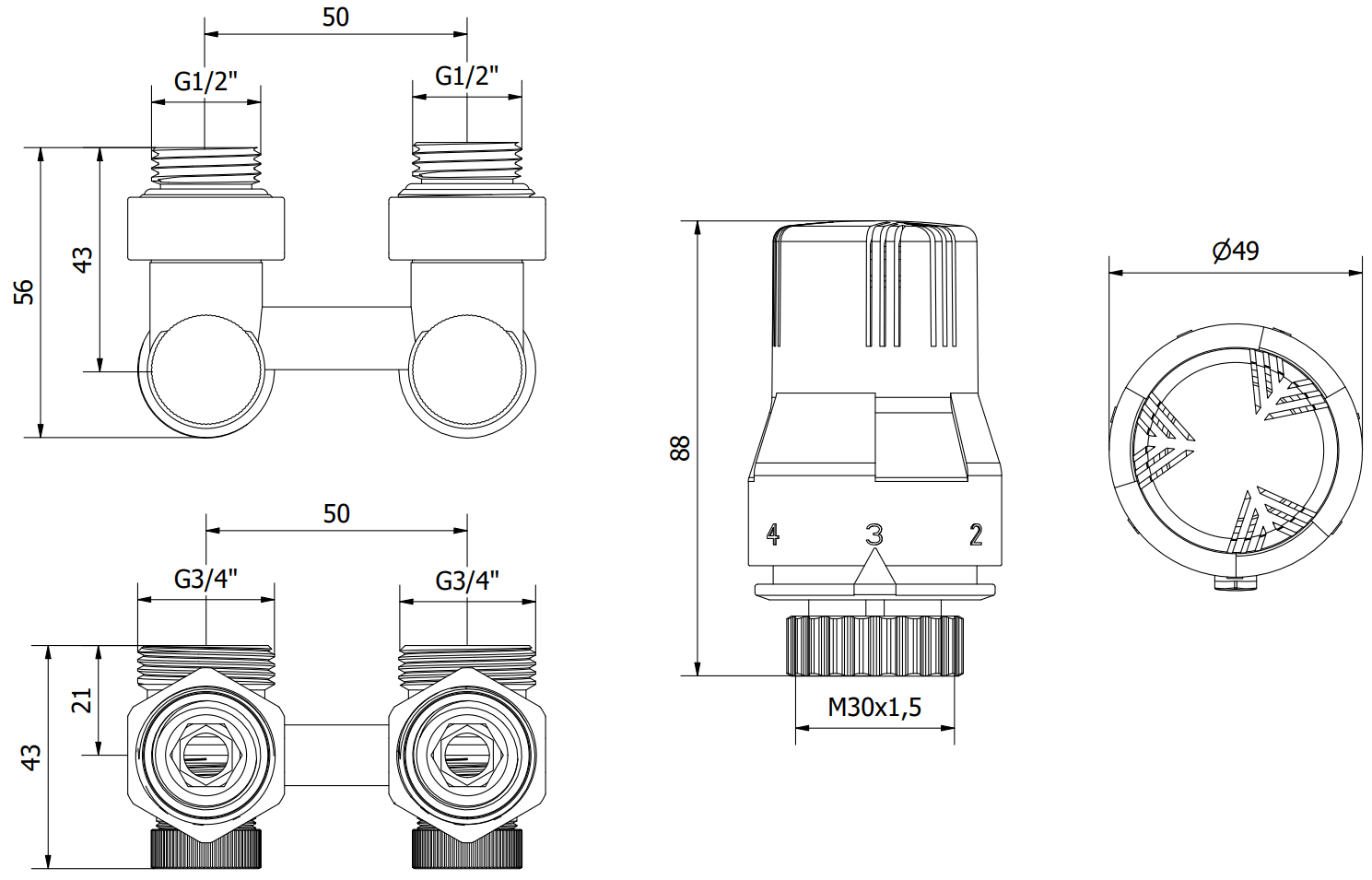 Diâmetro da conexão da válvula: G 1/2" e G 3/4"