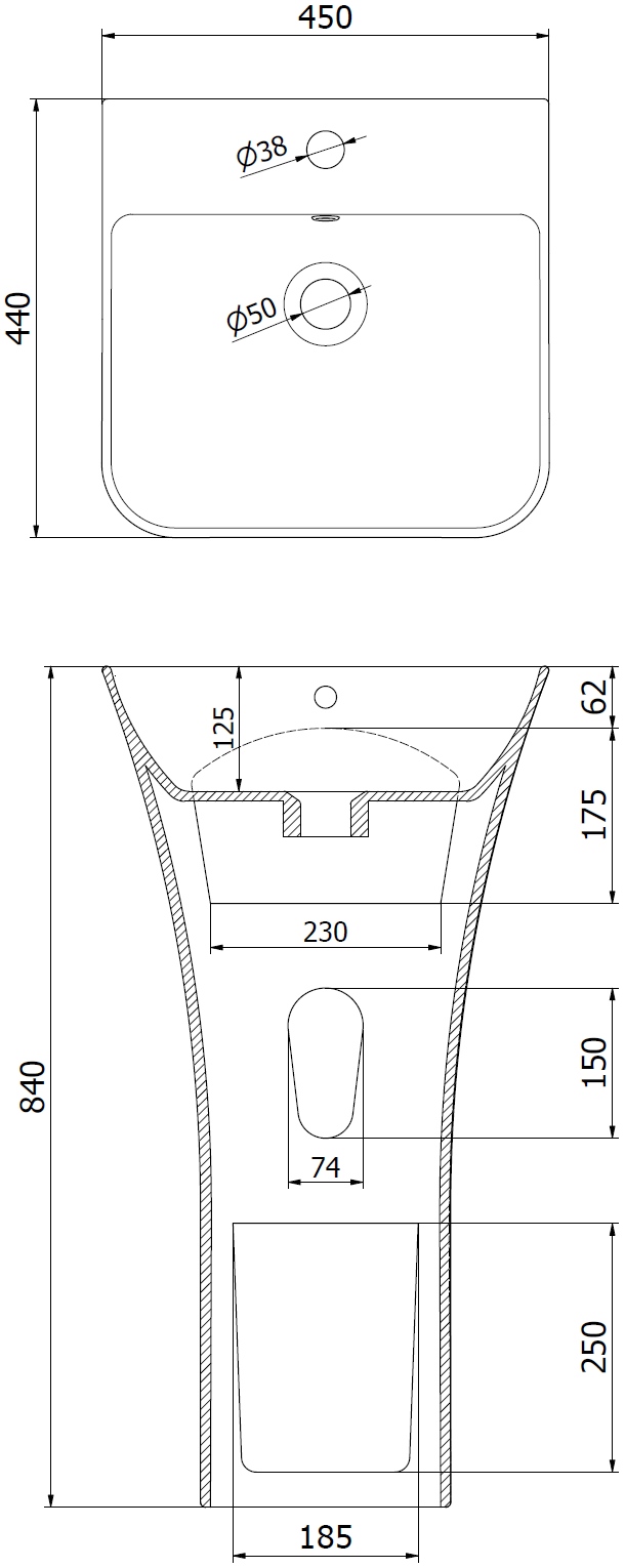 O lavatório possui uma abertura onde podemos instalar uma torneira. Isso permite economizar espaço valioso na casa de banho e realçar a sua estética. Esta solução também facilita a manutenção da limpeza ao redor do lavatório.