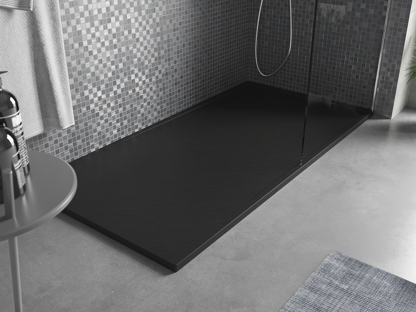 A superfície do tabuleiro do chuveiro assemelha-se a uma pedra na sua estrutura. Constitui uma combinação excecional de aparência natural com um design de interiores moderno. Adiciona caráter, realça a estética e a elegância da decoração da casa de banho e encanta com a sua forma.