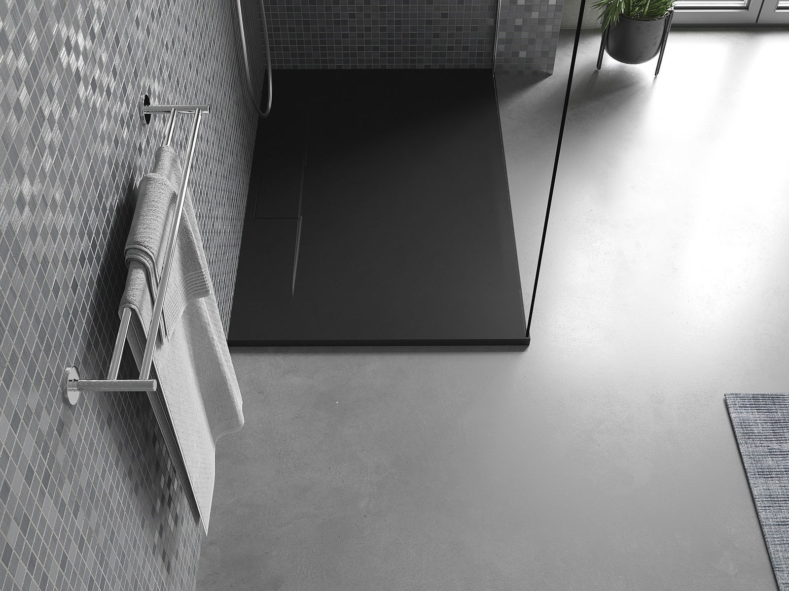 A superfície do tabuleiro do chuveiro assemelha-se a uma pedra na sua estrutura. Constitui uma combinação excecional de aparência natural com um design de interiores moderno. Adiciona caráter, realça a estética e a elegância da decoração da casa de banho e encanta com a sua forma.