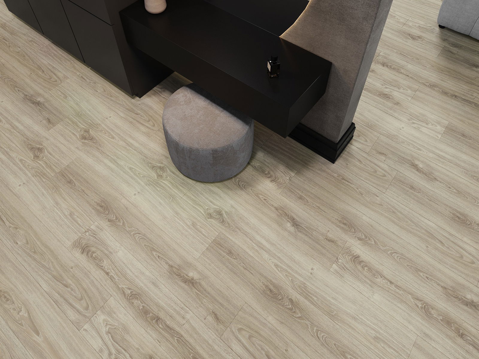 Os painéis têm uma junta de 4 lados - cada lado foi fresado de forma a criar uma junção em forma de V quando colocados. Este design faz com que o chão tenha uma estrutura mais pronunciada, conferindo-lhe profundidade e um caráter estético. Este efeito é especialmente valorizado em arranjos modernos, onde os detalhes realçam a aparência única do interior.