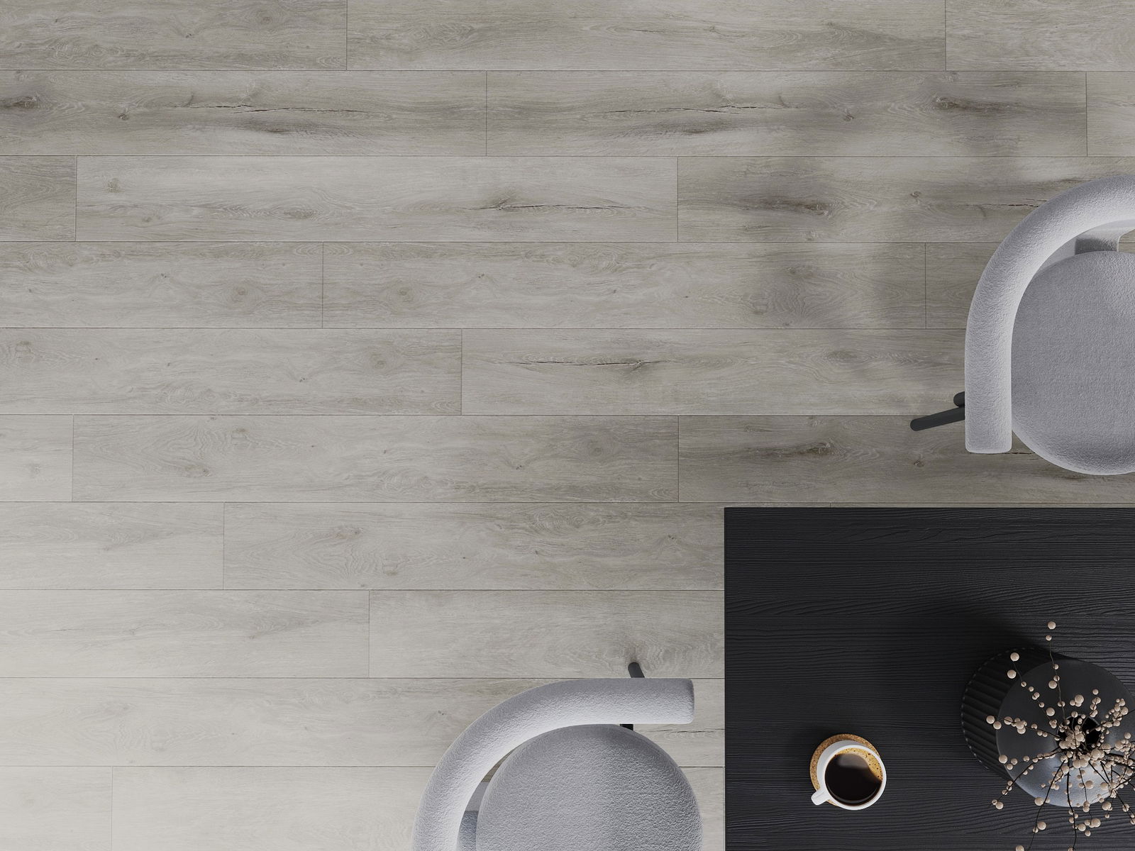 Os painéis vinílicos 1240 x 182 mm SPC 6,5 mm oferecem muitas vantagens que transformarão a sua casa. Feitos de compósito de polímero e pedra, destacam-se pela impermeabilidade a 100%, tornando-os ideais para casas de banho e cozinhas. Além disso, a sua estrutura facilita a limpeza, e a espessura de 6,5 mm assegura conforto no uso. Graças ao sistema Uniclick 2G e à classe antiderrapante DS, a instalação e o uso dos painéis são descomplicados. Os painéis são compatíveis com aquecimento de piso de baixa temperatura, aumentando o conforto nos dias mais frios.
