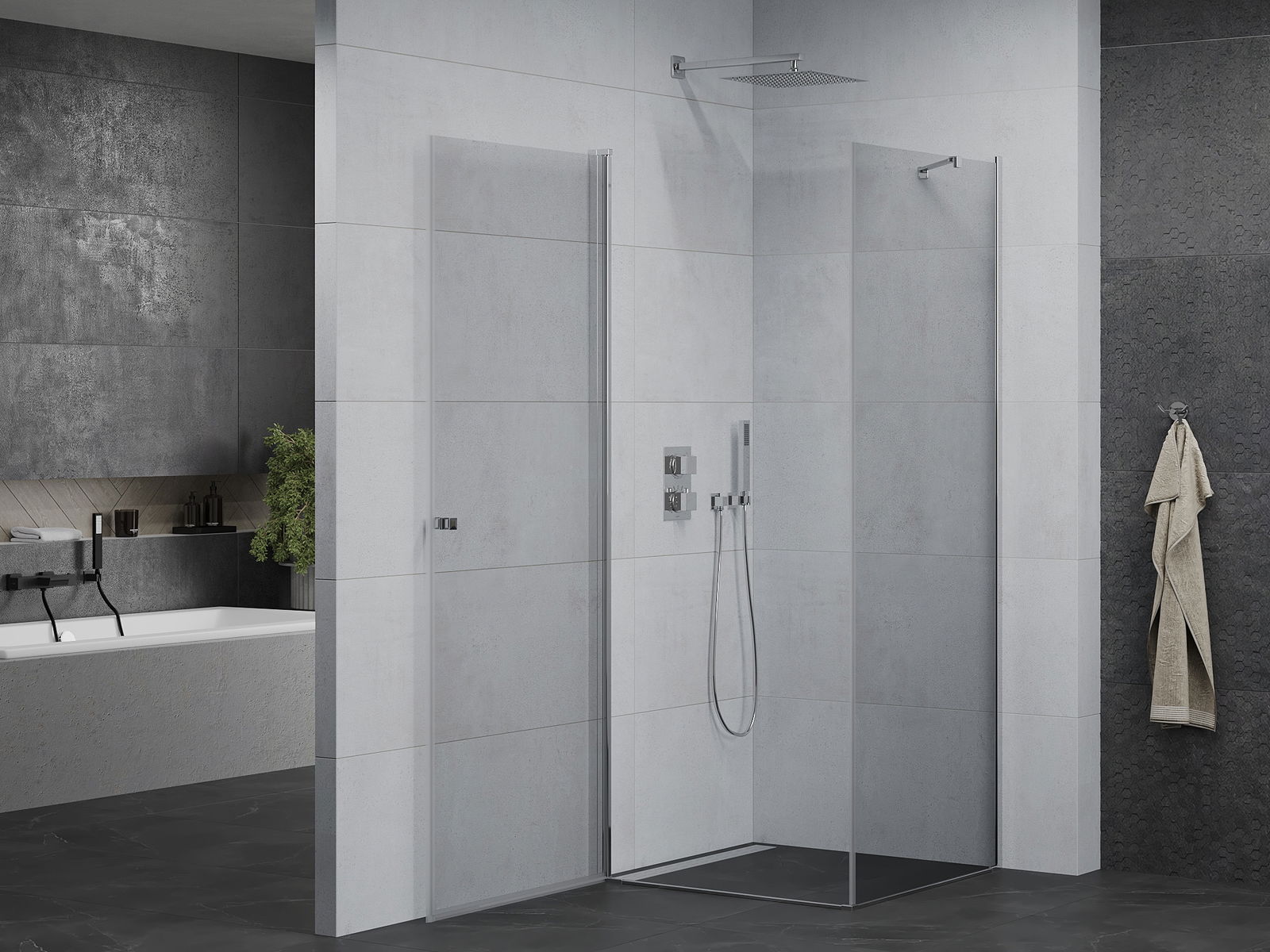 A pega prática e confortável foi feita de metal durável e resistente. A forma moderna combinada com o acabamento ajustado à cor dos perfis confere a todo o conjunto uma aparência moderna e estilosa, realçando a estética de qualquer casa de banho.