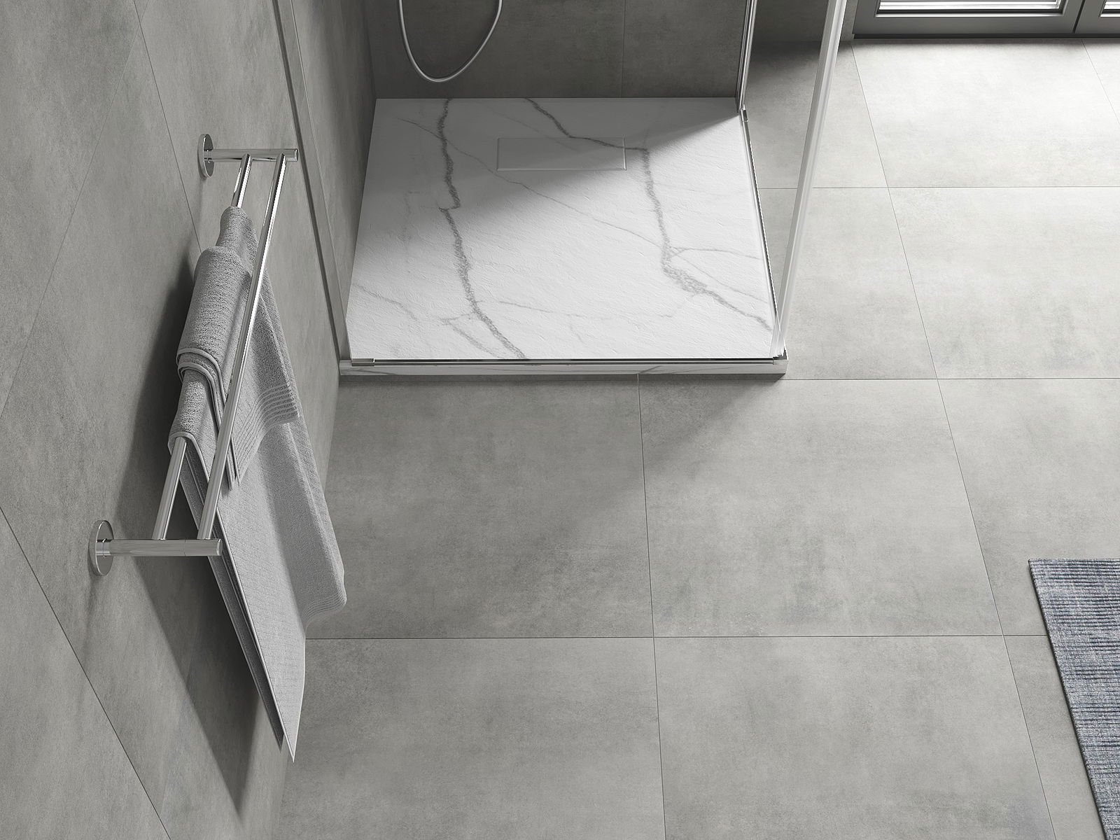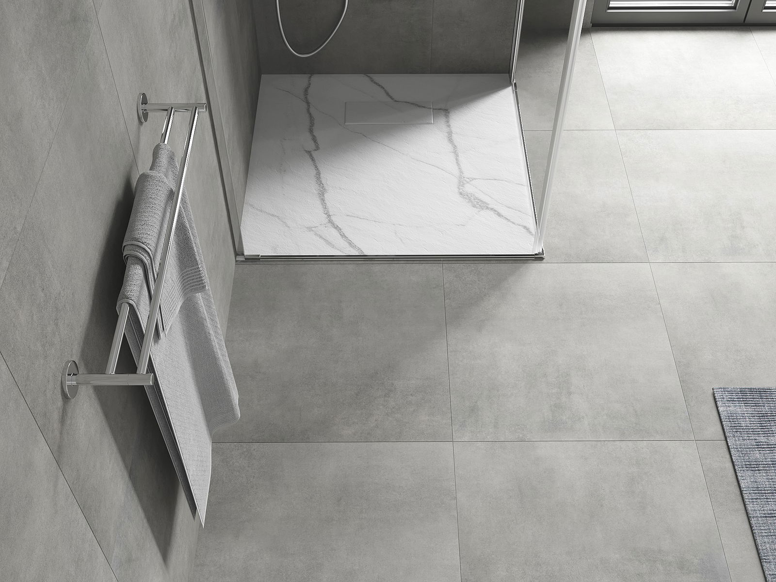 A pequena altura do base de duche permite uma montagem tradicional no pavimento ou embutida, criando uma superfície excepcionalmente uniforme e contínua. A flexibilidade de montagem permite ajustar o base de duche a diferentes decorações interiores.