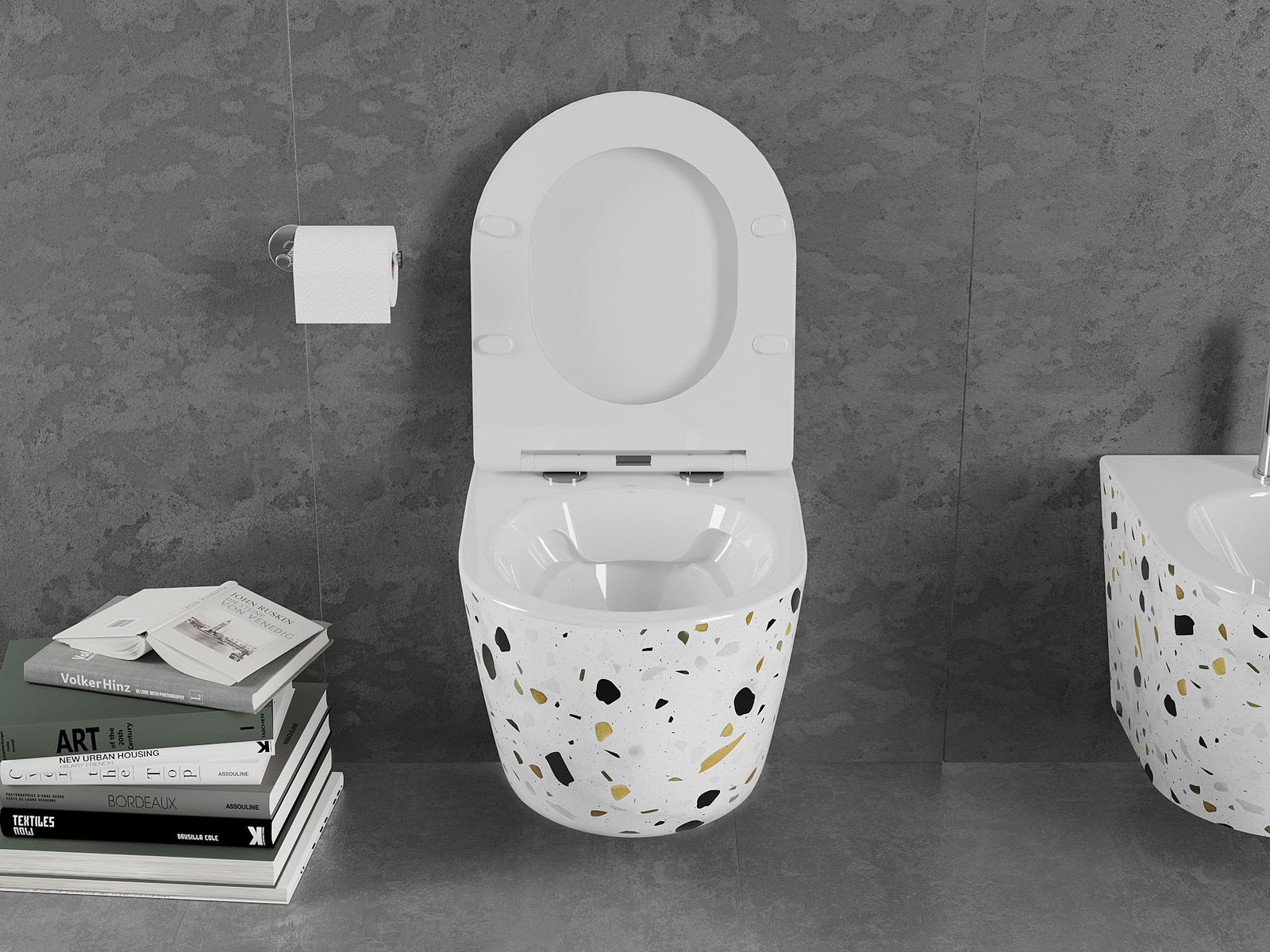 A utilização de uma estrutura embutida para a montagem da cerâmica permite a sua suspensão. Desta forma, podemos obter não só um aspeto moderno da casa de banho, como também um aumento do espaço e uma manutenção mais fácil da limpeza.