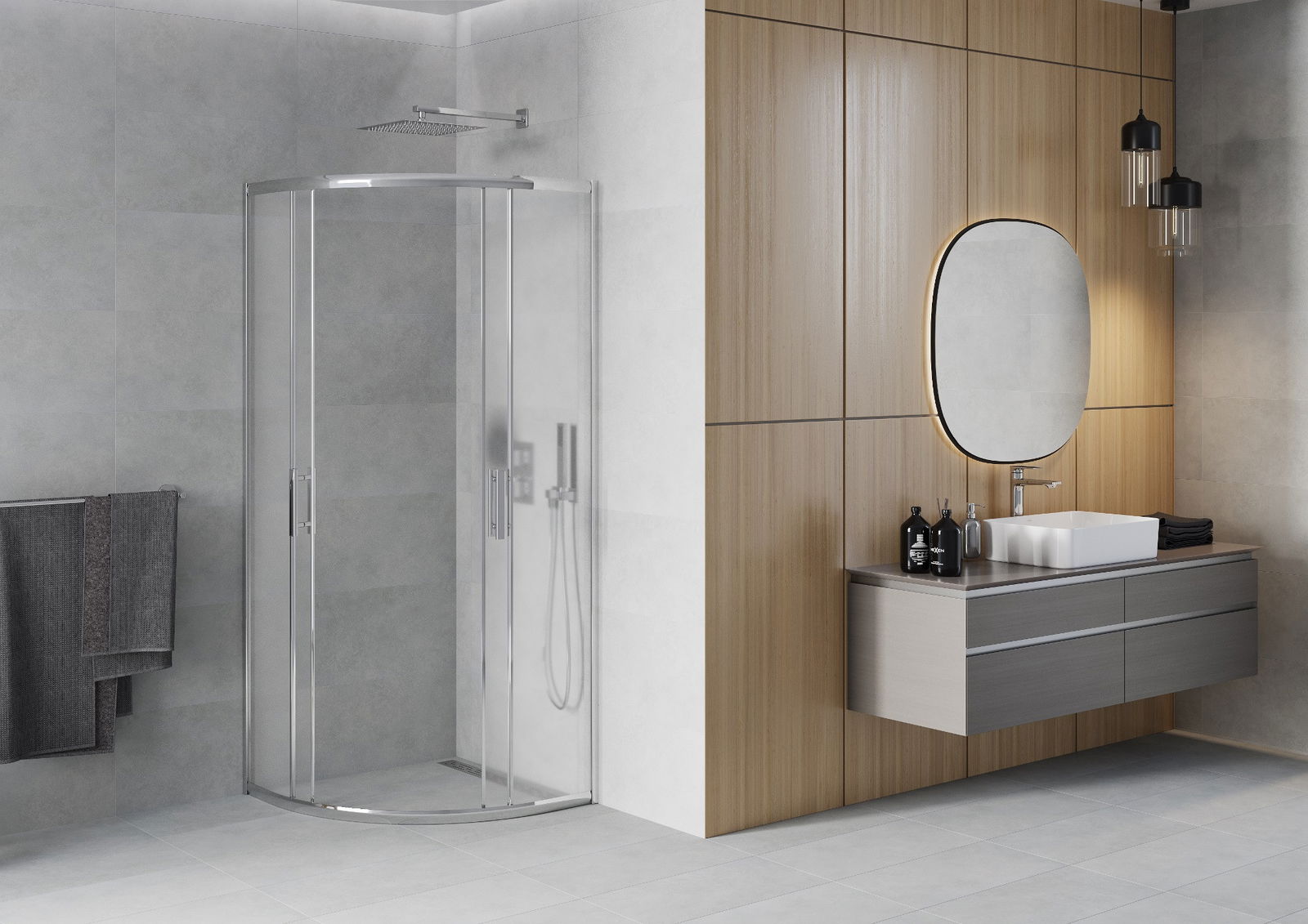 As portas de correr movem-se em calhas especiais e não requerem espaço adicional para serem abertas, por isso são ideais para casas de banho mais pequenas. Graças aos rolos duplos de plástico durável, o seu movimento é suave.