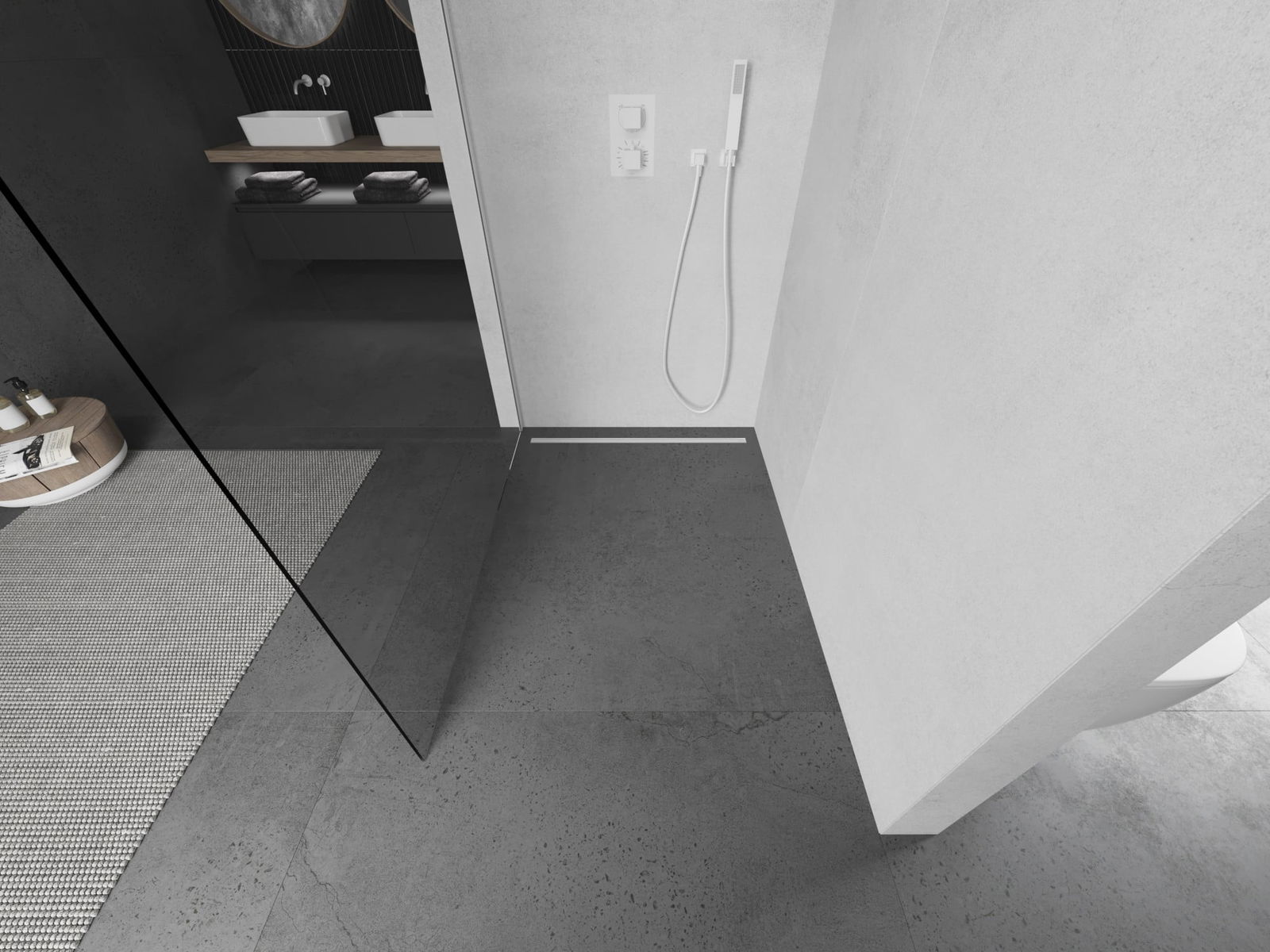 O produto, dependendo das necessidades, pode ser montado tanto no chuveiro como diretamente no chão. O método de montagem universal permite adaptar o produto a diferentes tipos de casas de banho e configurações de espaço.